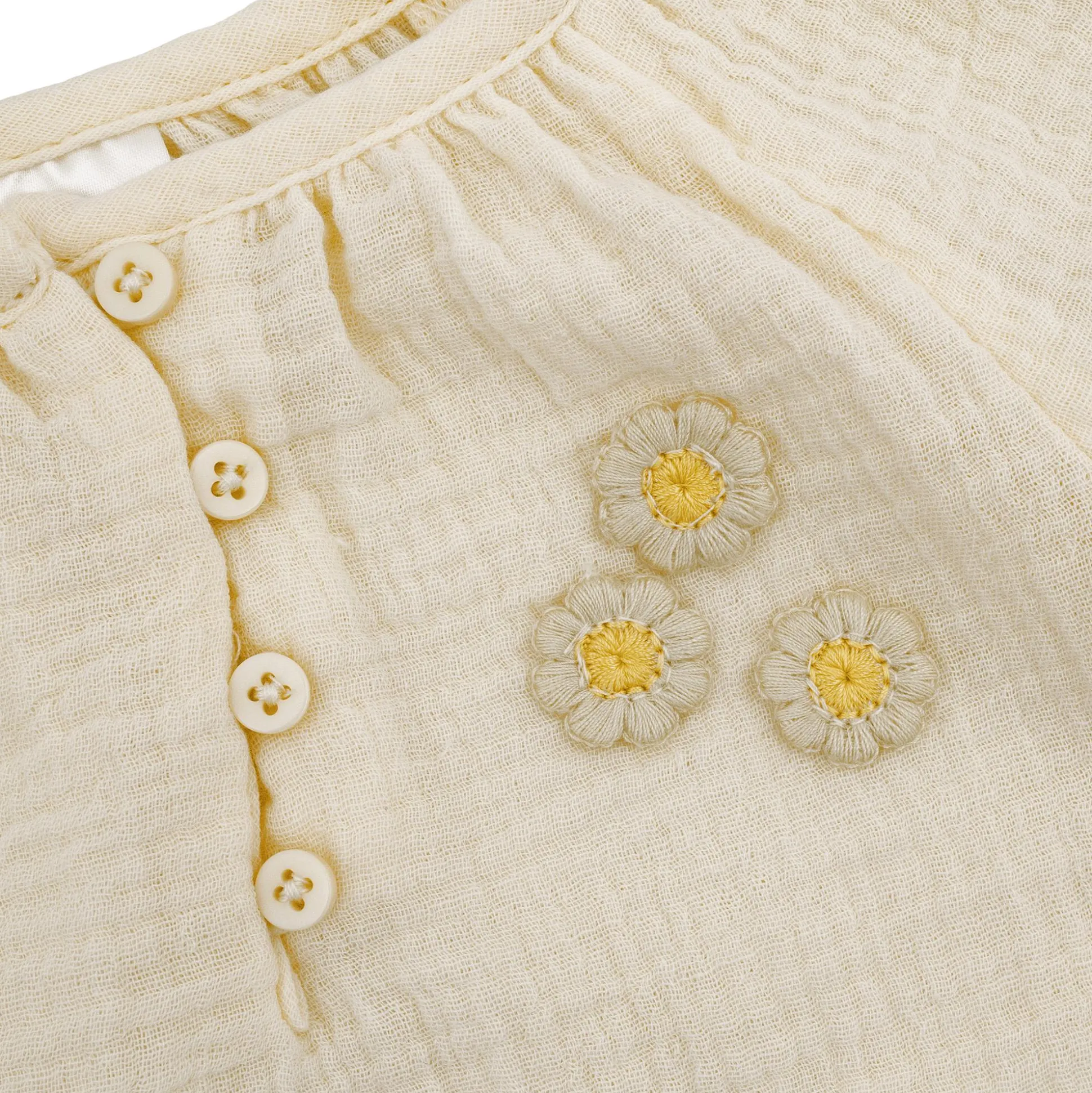 - zarte Stickerei mit drei Blümchen auf der Brust