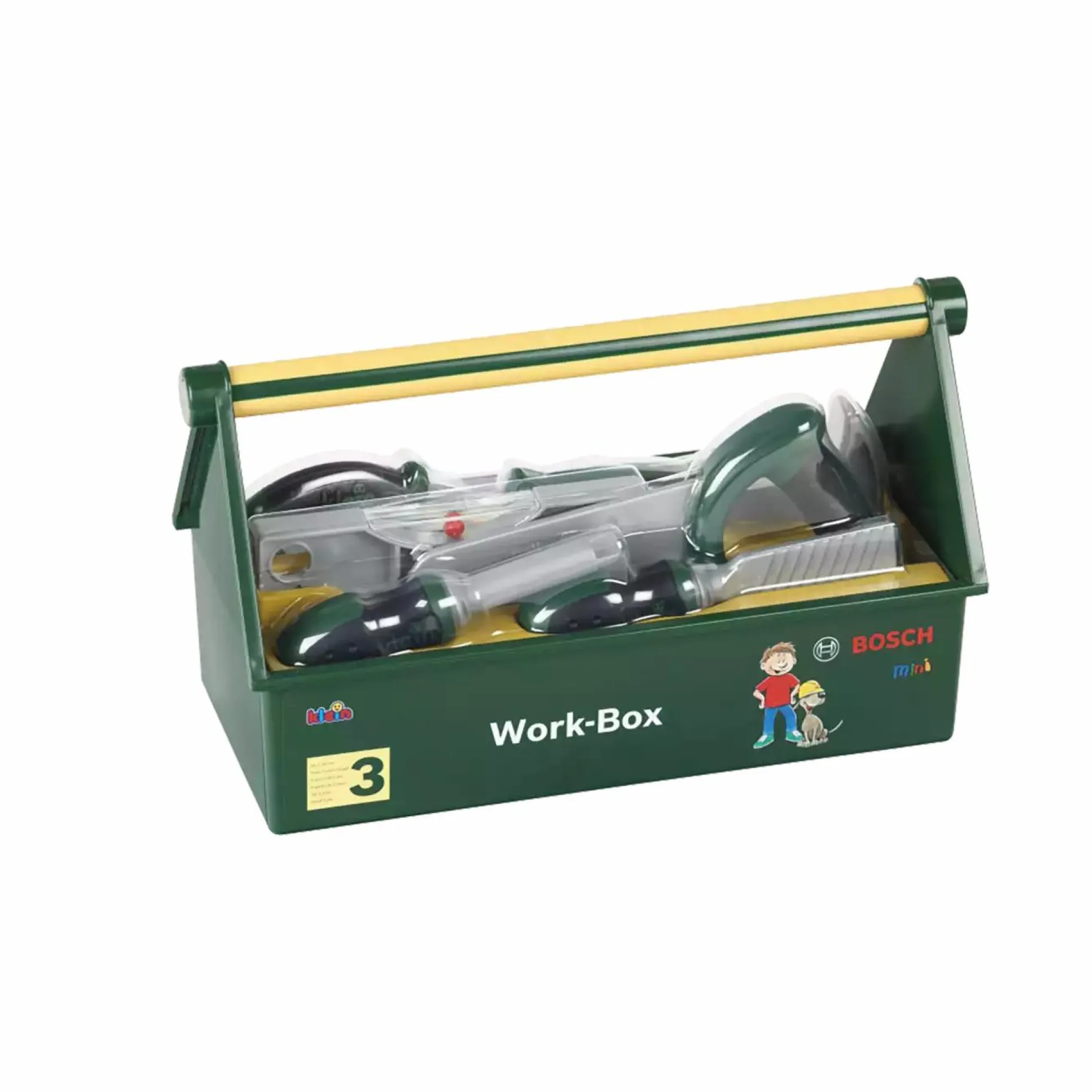 Dieser kindgerechte Bosch Werkzeugkasten von Theo Klein ist eine Nachbildung und perfekt für kleine Handwerker ab ca. 3 Jahren geeignet. Er beinhaltet unter anderem 7 Werkzeuge: Kombizange, Säge, Feile, Wasserwaage, Zange, Hammer und Schraubenschlüssel. Durch den Werkzeugkasten lernt dein Kind spielend den Umgang mit dem Werkzeug und es wird die Hand-Augen-Koordination gefördert, sowie die Motorik.