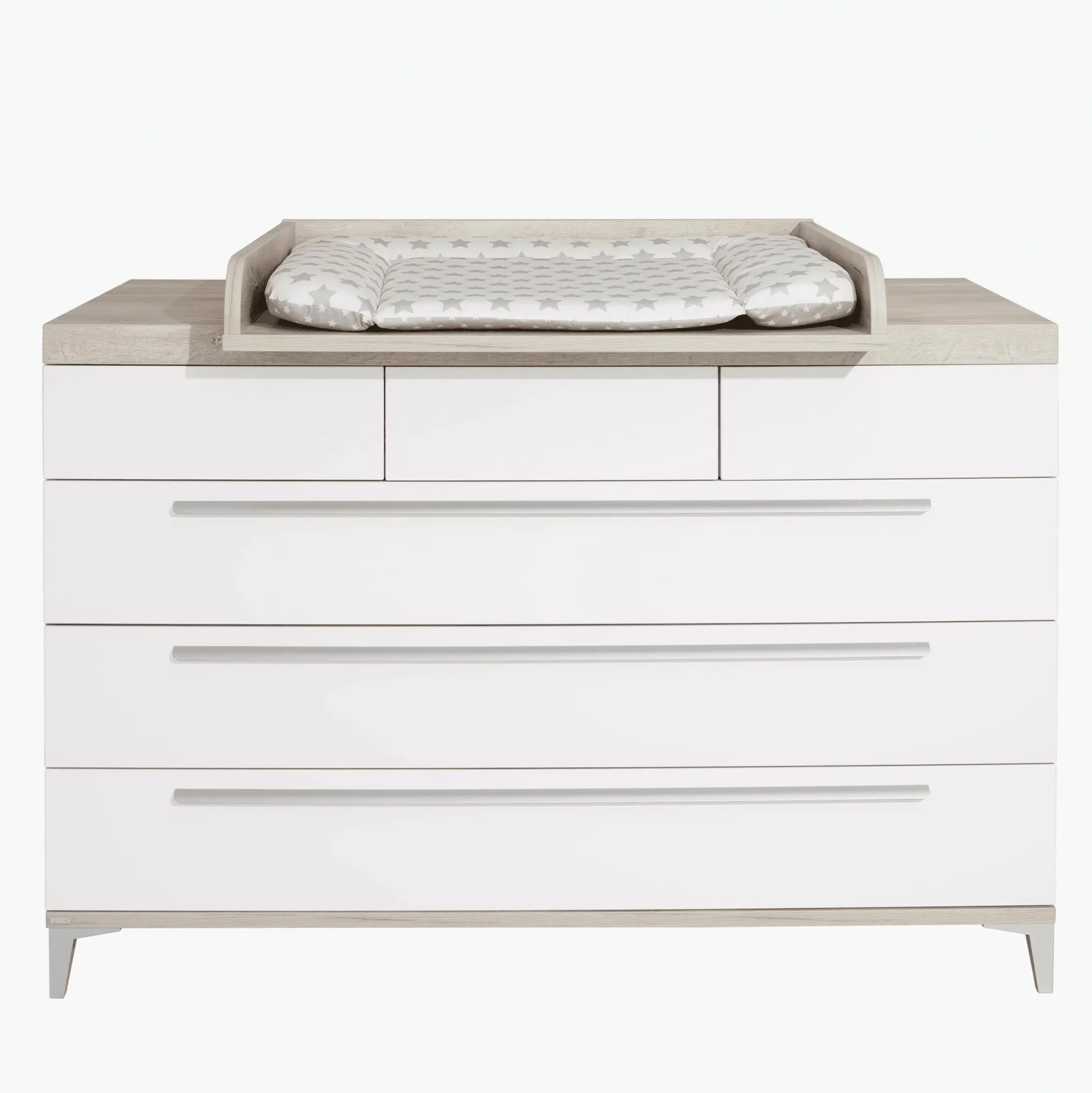 Der breite Wickelaufsatz Mathea von Paidi kann besonders einfach an der breiten Wickelkommode Mathea befestigt werden. Beim Windelnwechseln bietet der extra hohe Wickelaufsatz eine zusätzliche Sicherheit und ist gleichzeitig ergonomisch.
