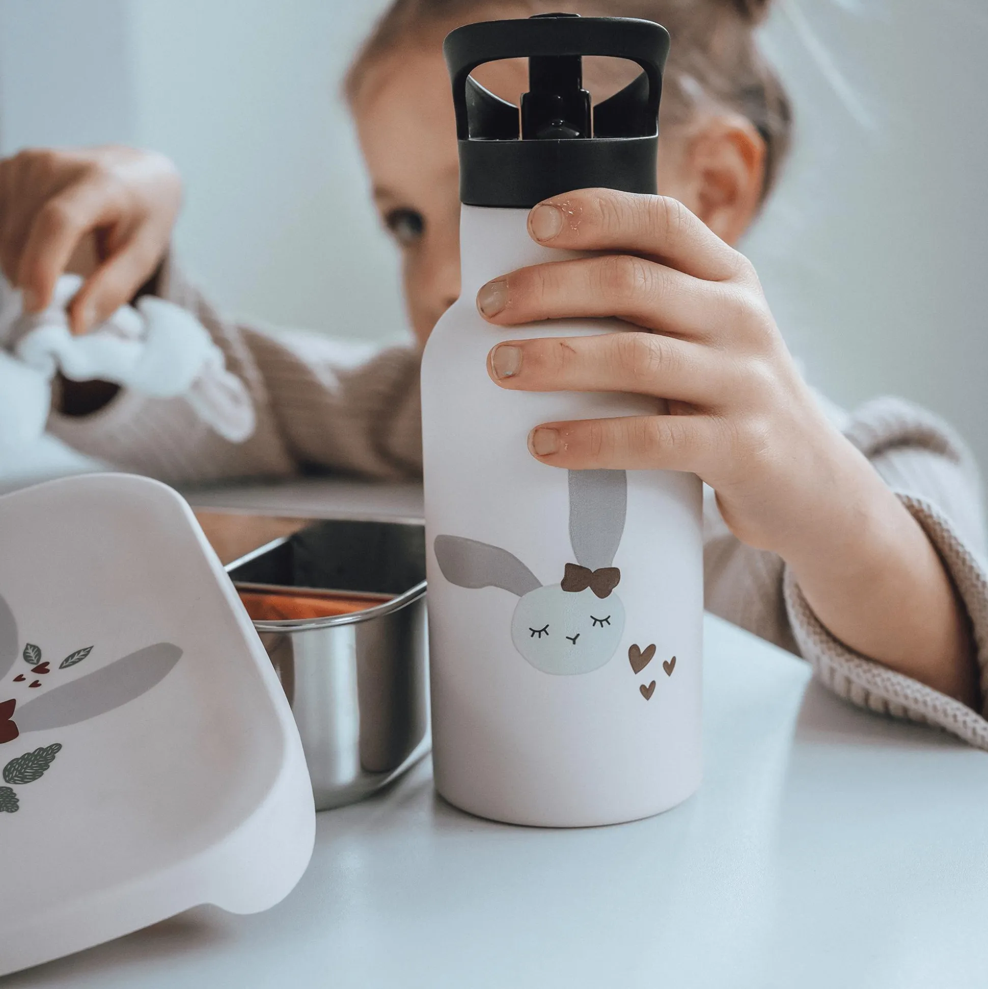 Mit der Brotdose von kikadu lassen sich die Lieblingssnacks von deinem kleinen Schatz überall mit hinnehmen! Sie besteht aus stabilem und rostfreiem Edelstahl, welcher nicht nur leicht ist, sondern auch dafür sorgt, dass weder Geschmäcker noch Gerüche der Lebensmittel aufgenommen werden. Darüber hinaus ist die Box für verschiedene Leckereien in drei praktische Fächer unterteilt. Der Silikondeckel im niedlichen Hasendesign ist frei von BPA und verschließt die Brotbox hermetisch.