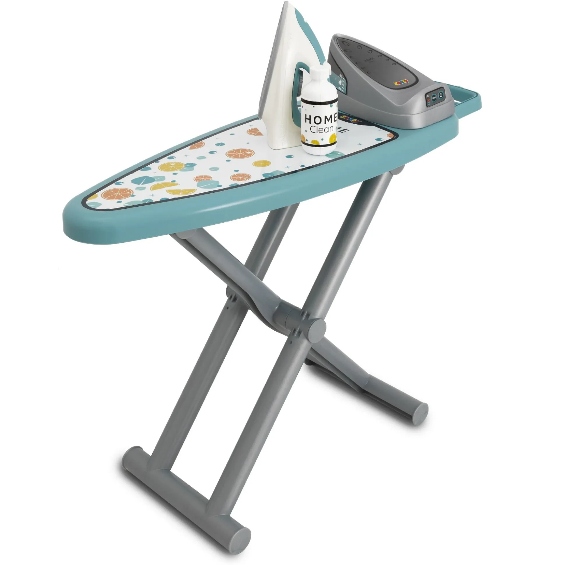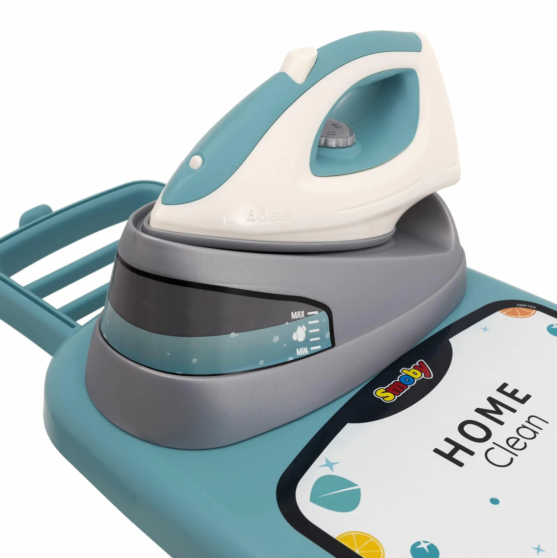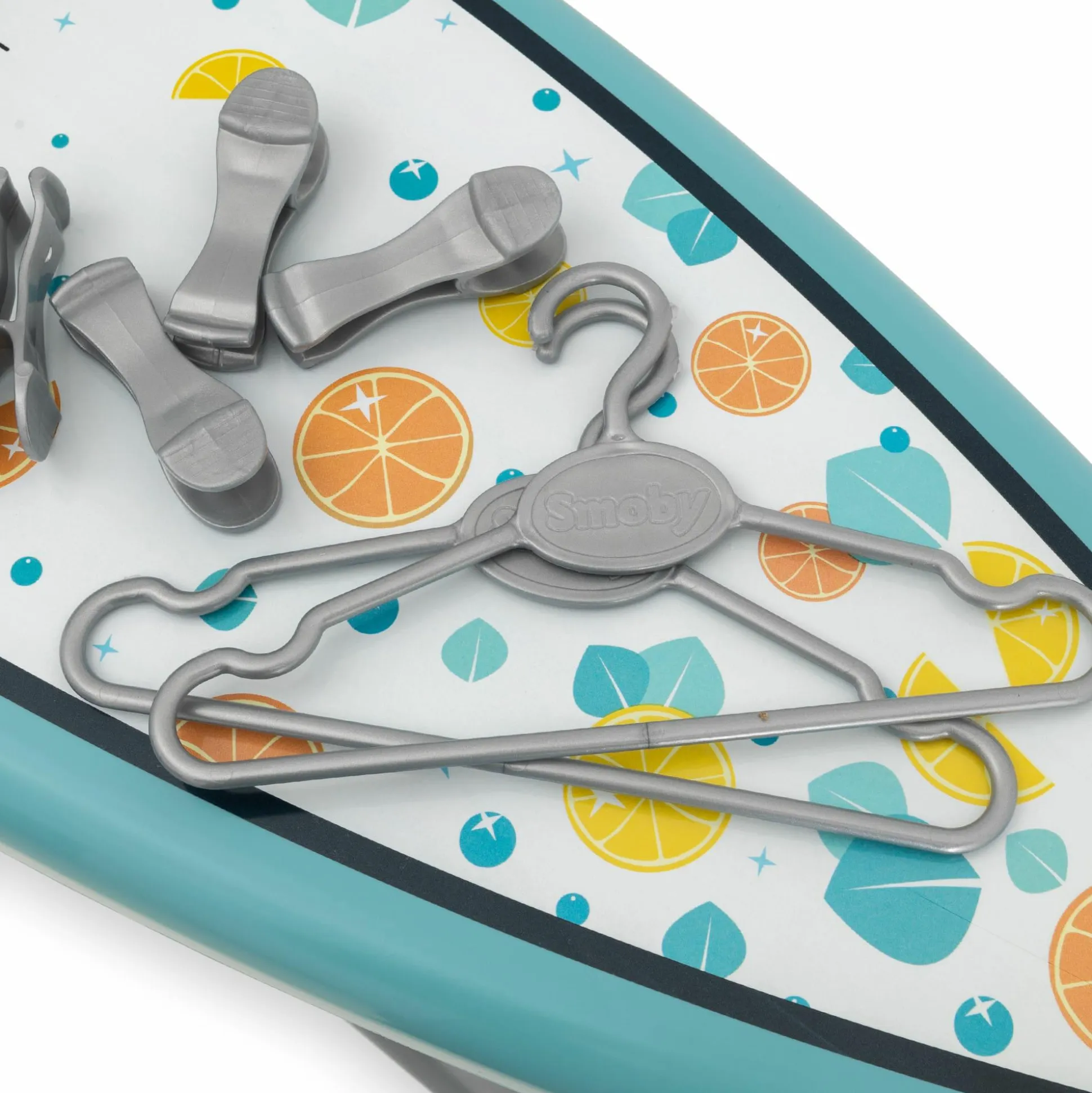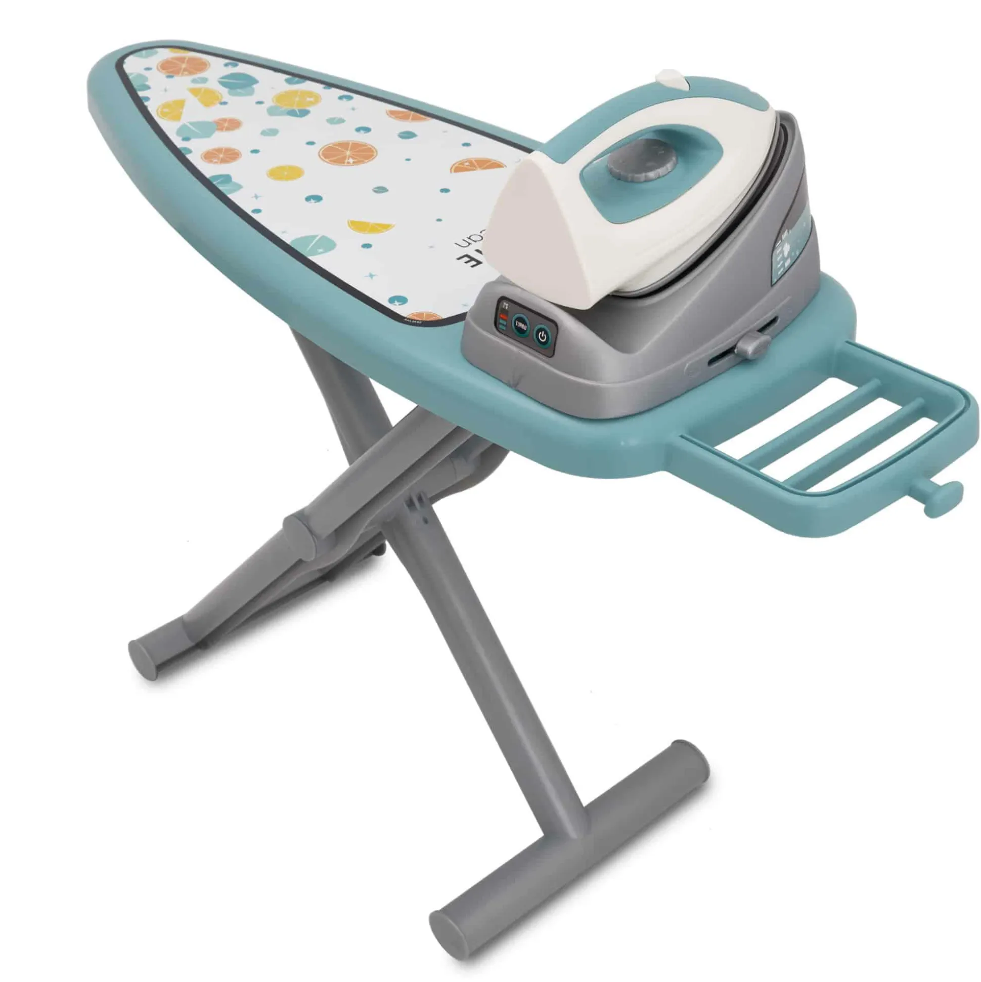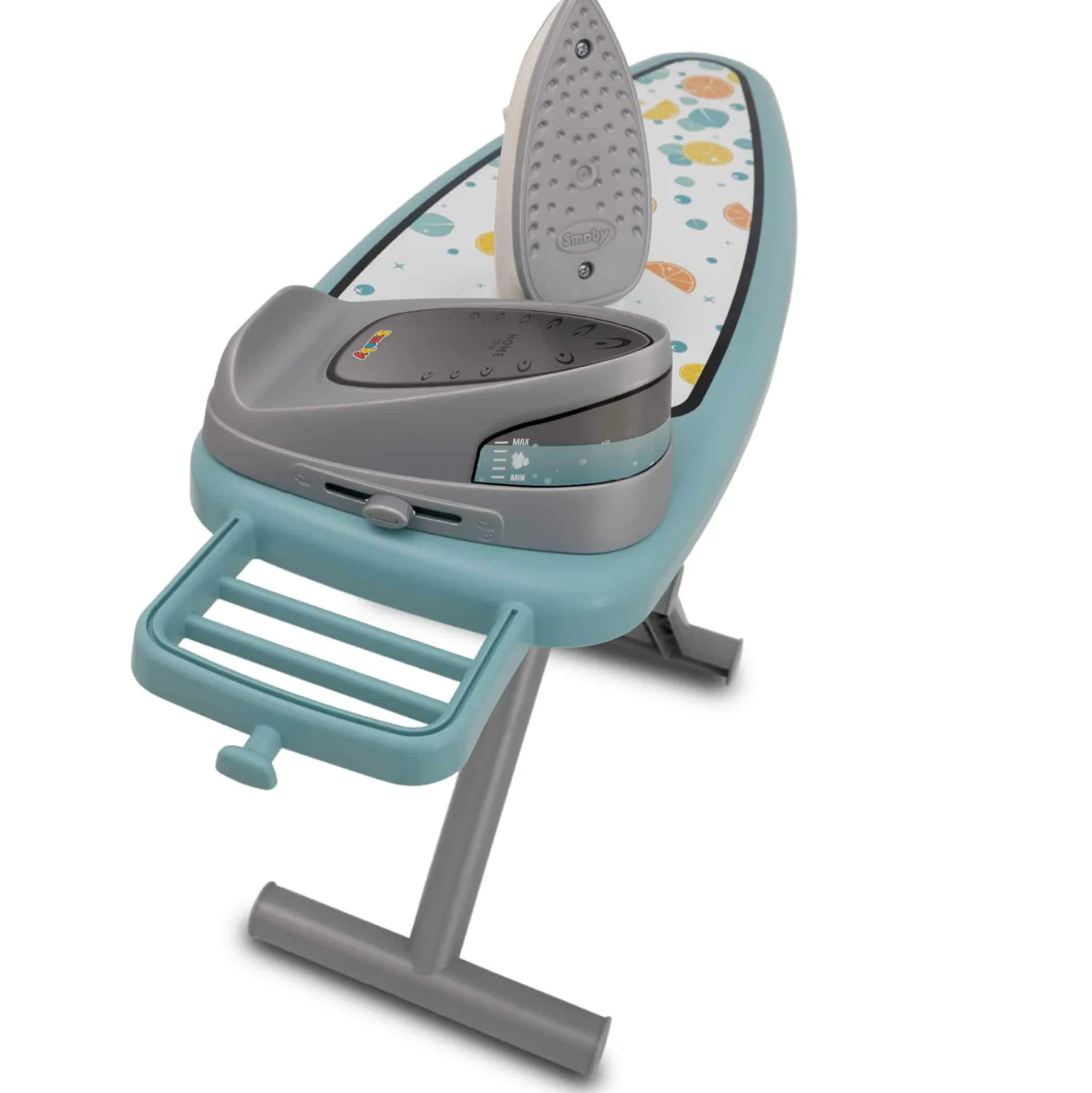 Mit dem Smoby Bügelbrett und seiner integrierten Dampfstation sind deine kleinen Helfer perfekt ausgerüstet, um tatkräftig im Haushalt mitzuarbeiten! Hier können Kinder ganz wie die Großen bügeln.Das authentische Bügelbrett bietet ein stabiles Kunststoffgestell und eine praktische Ablage für das Bügeleisen mit einer realistischen, mechanischen Drehknopf-Funktion, die ein lustiges Geräusch erzeugt. Nach dem Spielen lässt sich das Bügelbrett kinderleicht zusammenklappen und die Kleidung kann auf den mitgelieferten zwei Bügeln aufgehängt werden. Mit den vier beiliegenden Wäscheklammern können weitere Kleidungsstücke fixiert werden. Wie im echten Leben gibt es sogar eine Flasche Bügelstärke (Leerverpackung)!Die hochwertigen Kunststoffteile sind Made in Frankreich und versprechen langes Spielvergnügen für dein Kind. Dein kleiner Haushaltshelfer wird es lieben, wie die Großen zu bügeln, und gleichzeitig wichtige Fähigkeiten für die Zukunft entwickeln.