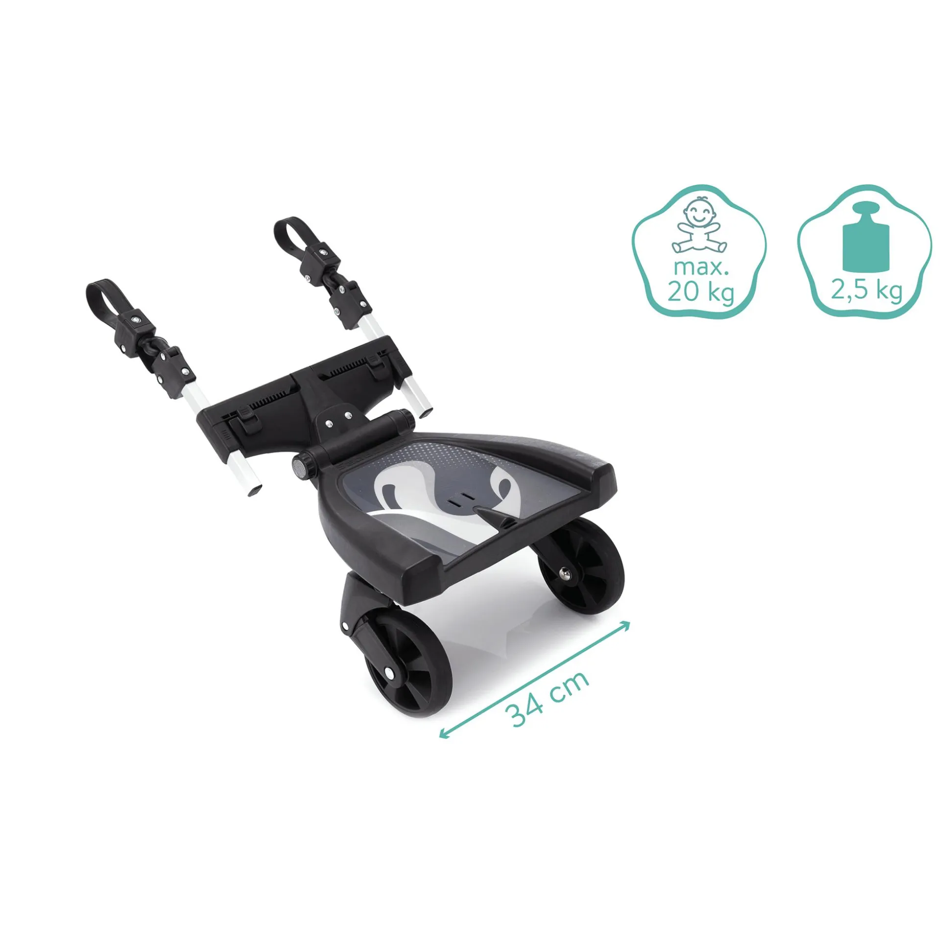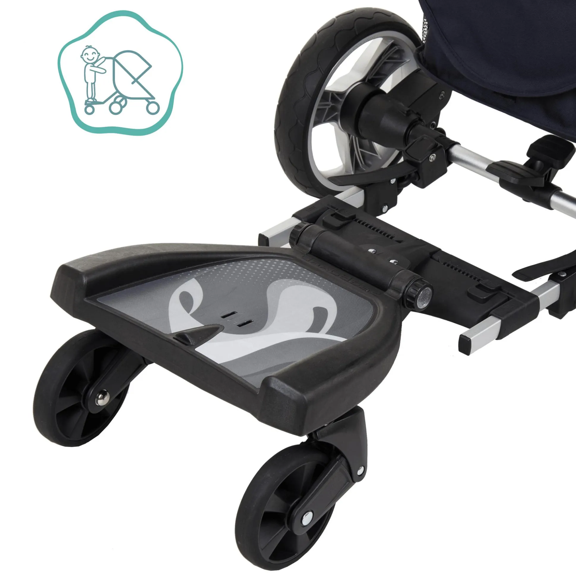 - das Buggy-Board ist passend für alle gängigen Kinderwagen-, Sportwagen- und Buggy-Modelle mit parallelen und vertikalen Gestellrahmen