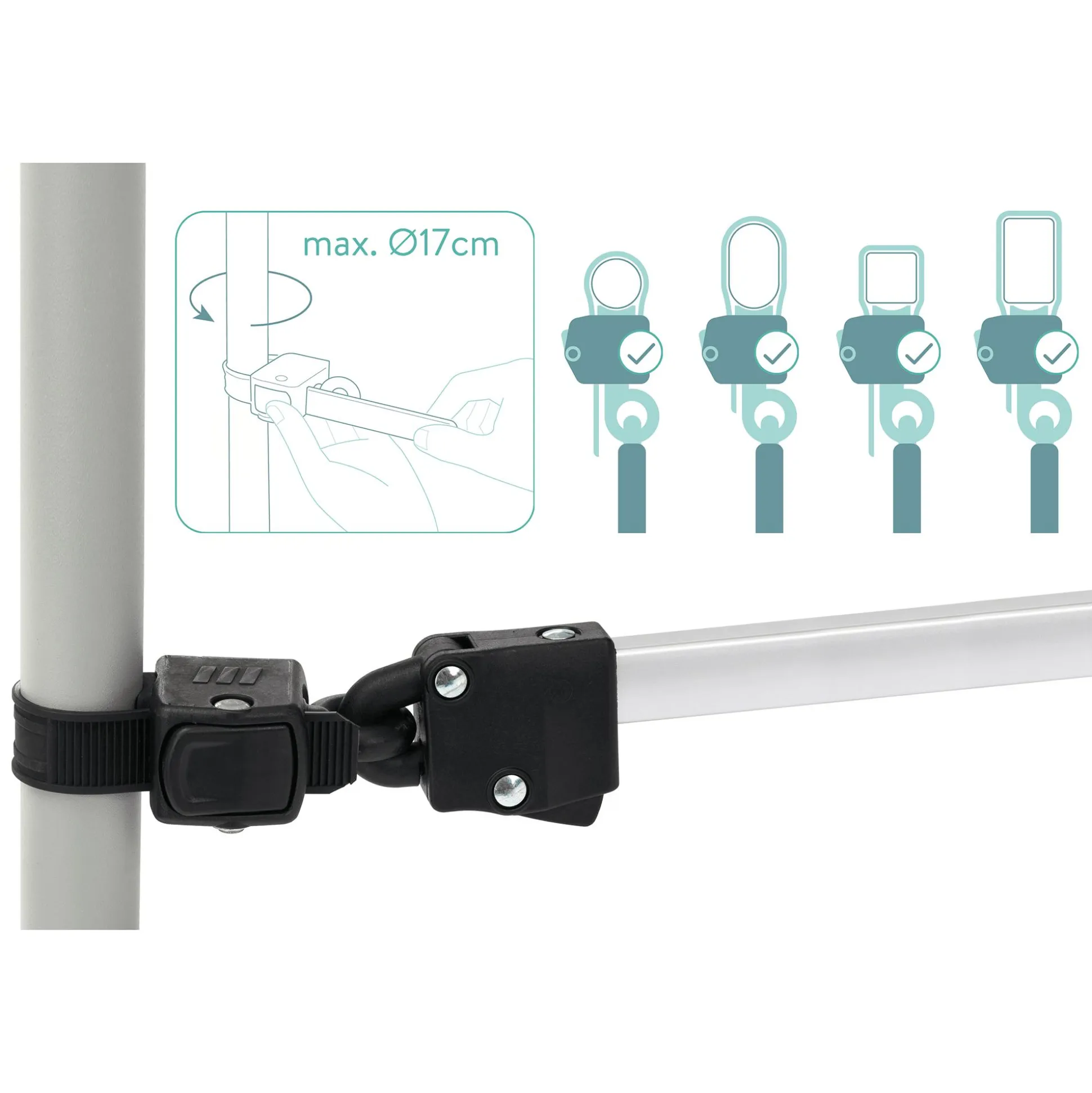 - universelle, 180° drehbare Aufnahme