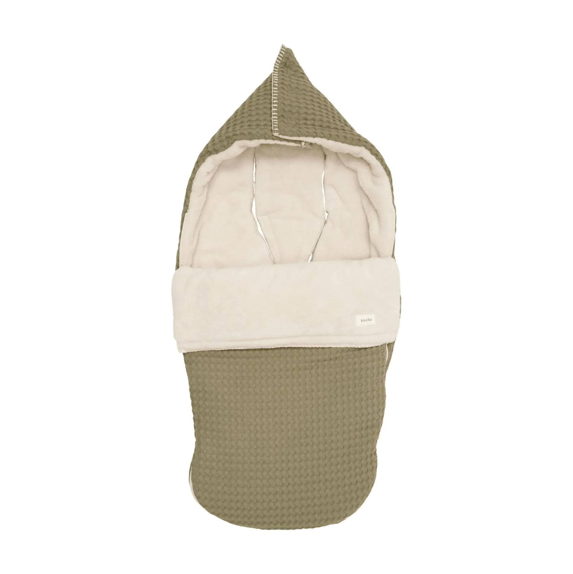Dieser mit Teddy gefütterte Fußsack Oslo Moss von Koeka passt in fast jeden Buggy und hält deinen kleinen Liebling schön warm, wenn du in den kälteren Monaten nach draußen gehst. Für zusätzliche Wärme und Komfort kannst du mit Hilfe eines Klettverschlusses an der Oberseite einen Kapuzenpullover formen. Der Koeka Fußsack Oslo ist mit einem Reißverschluss leicht zu öffnen – zusätzlich kann auch das gesamte Oberteil abgenommen werden. Das Oberteil des Fußsacks kann auch im geschlossenen Zustand umgeschlagen und mit einem Kordelzug fixiert werden. So sitzt dein Nachwuchs jederzeit bequem und ihr geht stylisch raus!