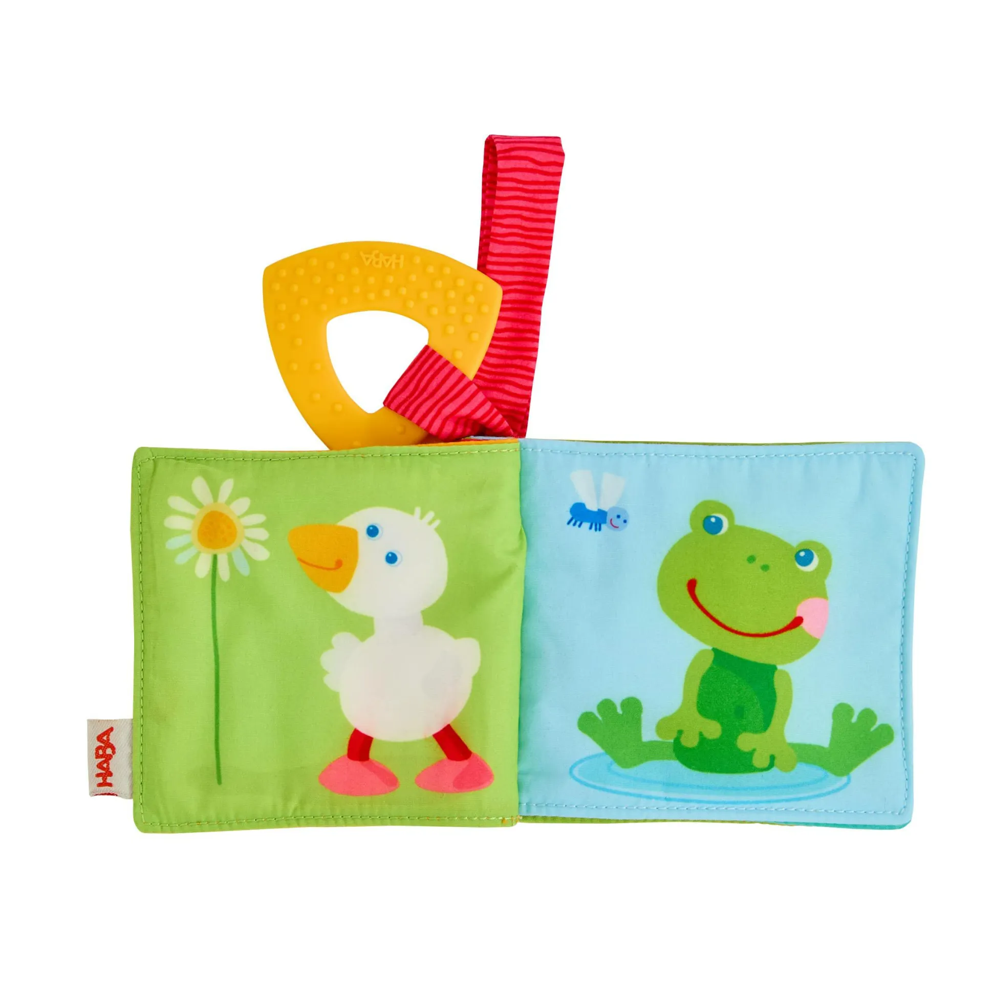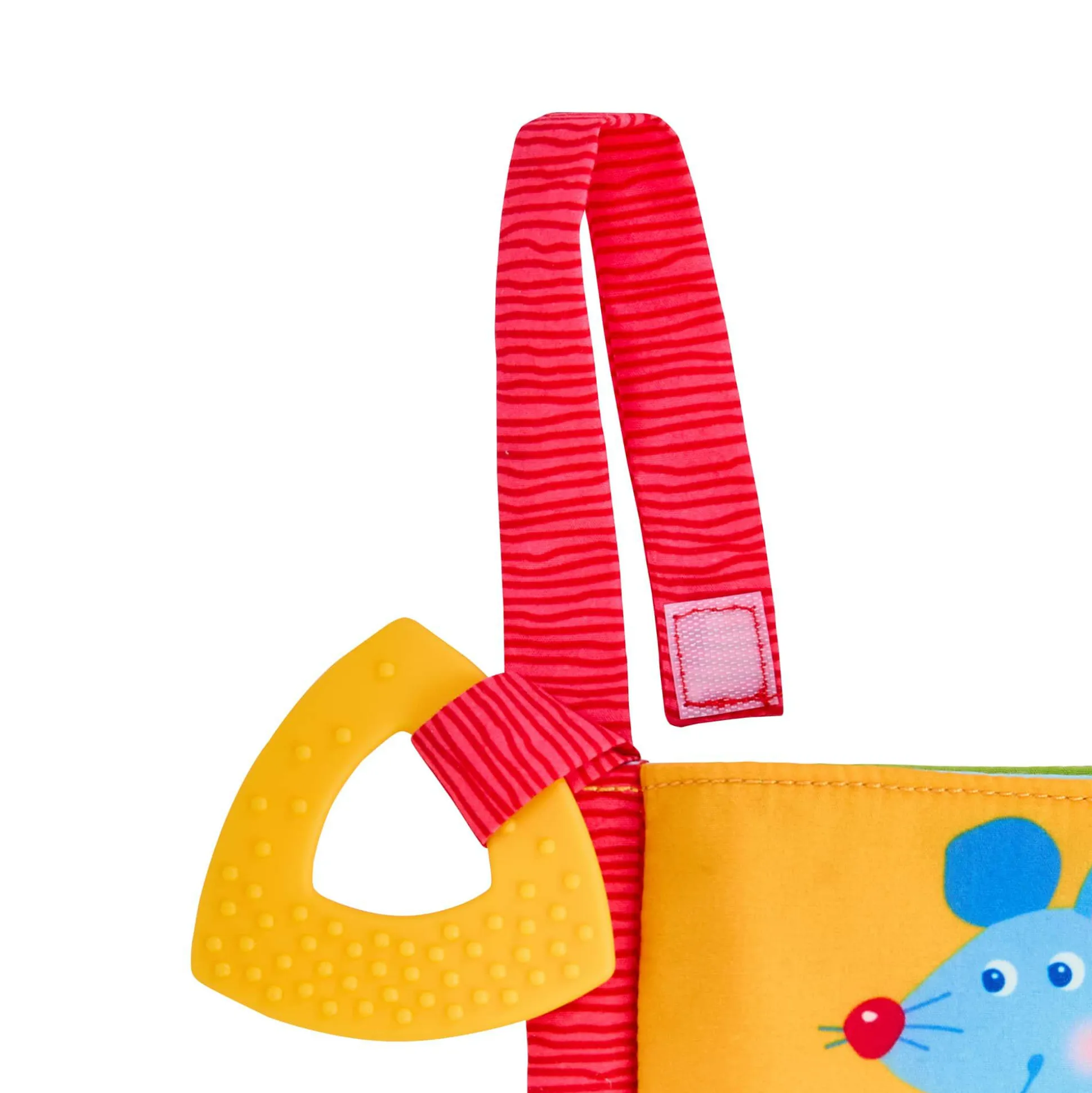 Die greifbare Klettschlaufe ermöglicht es, das Buch sicher am Buggy oder Kinderwagen zu befestigen, sodass es immer griffbereit ist und nicht verloren geht. Ein zusätzliches Highlight ist der angenähte Beißring, der kleinen Entdeckern beim Zahnen wohltuende Linderung verschafft.