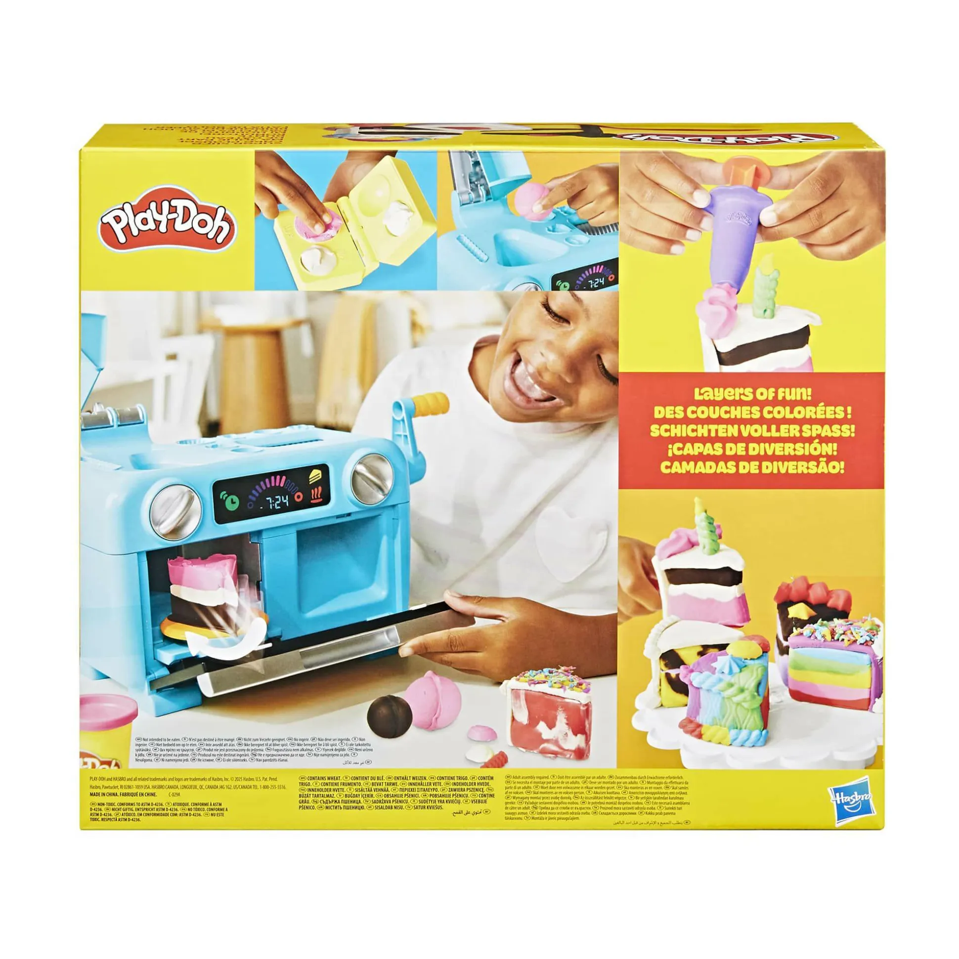 Mit dem Set „Bunte Konditorei“ von Play-Doh können kleine Konditoren ab ca. 3 Jahren ihrer Kreativität freien Lauf lassen. Der Spielzeug-Backofen wird mit Knete befüllt und enthüllt beim Öffnen der Tür nach einem fröhlichen Klingeln bunte Tortenstücke. Mit der integrierten Glasur-Knetrolle, den Ausstechern, dem Drehscheiben-Ständer und dem Deko-Tool lassen sich fantasievolle Kuchen, Glasuren und Süßigkeiten gestalten.