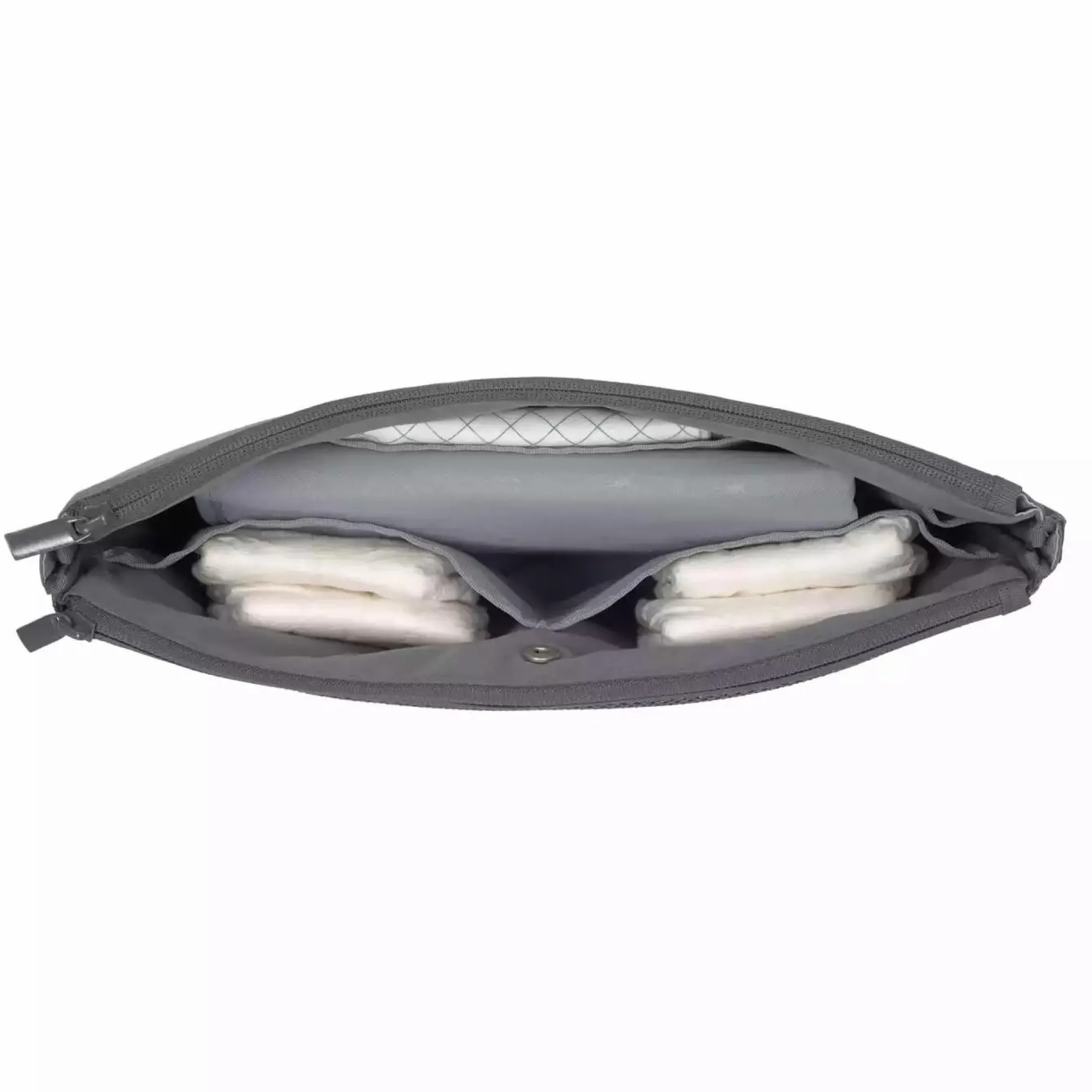 Alle wichtigen Wickelutensilien kompakt verstaut: Durch seine ideale Größe findet der Casual Changing Organizer Anthracite von Lässig in jeder Tasche und jedem Rucksack seinen Platz. Und auch für sich allein ist der Changing Organizer mit integrierter Wickelunterlage praktisch als Clutch oder durch seine Handschlaufe zu tragen.