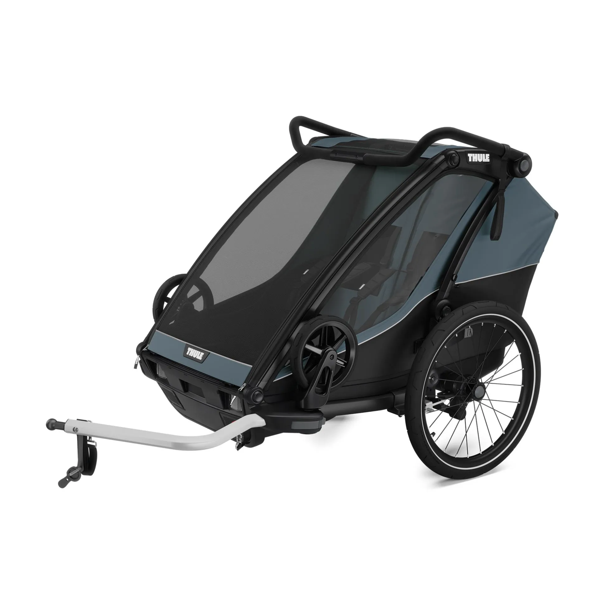 Der Thule Chariot Cab in der Farbe Dark Slate ist ein vielseitiger und besonders robuster 2-Sitz-Multisport-Fahrradanhänger, der euch als Familie optimal begleitet. Er eignet sich hervorragend zum Radfahren, Spazierengehen, Joggen und sogar Skifahren.Die einhändig bedienbare Neigefunktion erlaubt das unabhängige Verstellen der komfortabel gepolsterten Sitze, die teilweise abnehmbar und leicht zu reinigen sind.
