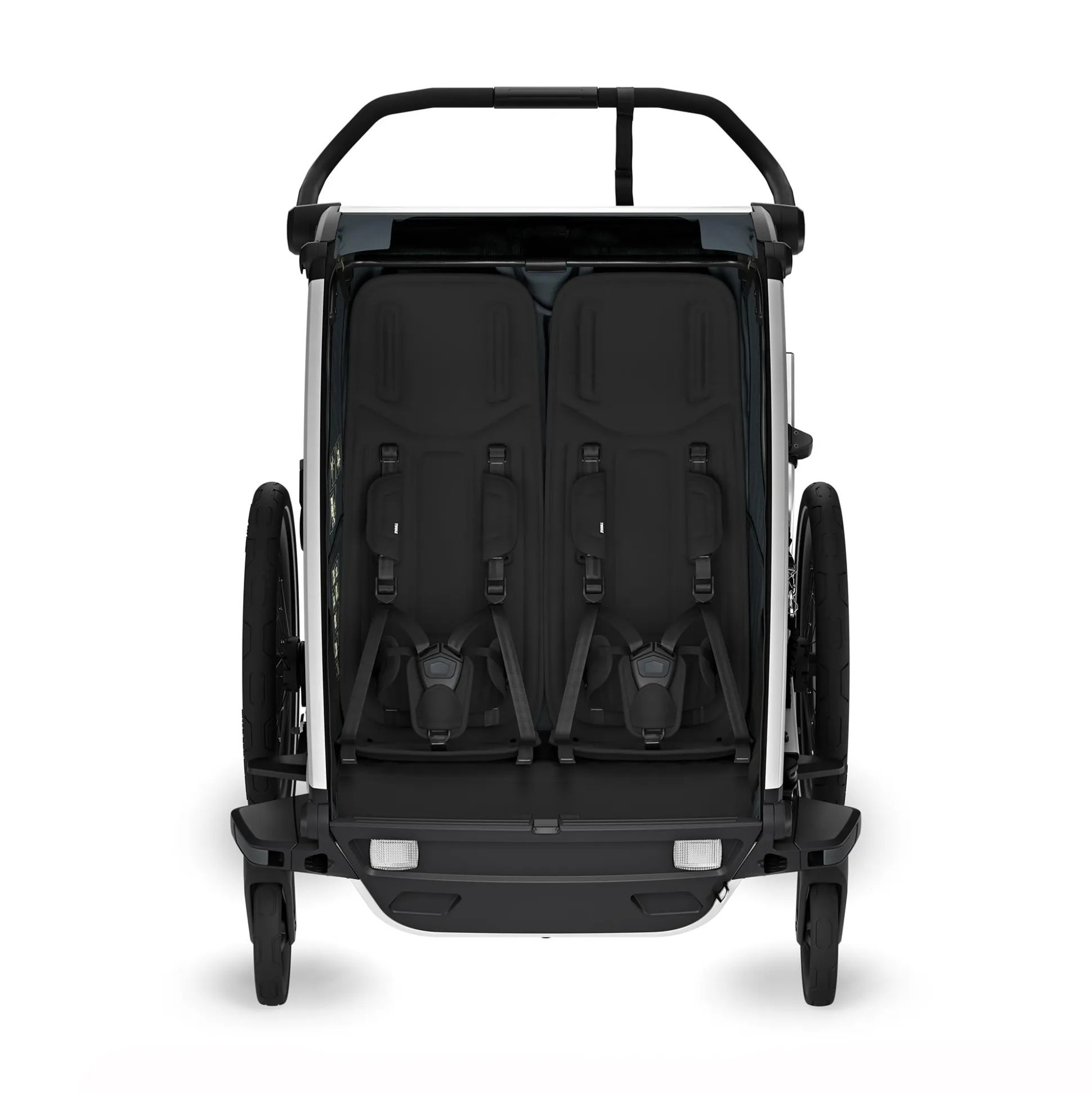 Im Inneren des Thule Chariot Cross 2 erwartet die Kinder ein weicher, ergonomisch geformter Sitz für unvergleichlichen Komfort. Dank der modularen Sitzmöglichkeiten kannst du wählen, ob ein Kind in der Mitte oder zwei Kinder auf beiden Seiten des Anhängers sitzen sollen. Beim Thule Chariot Cross 2 setzt Thule auf Nachhaltigkeit und verwendet Materialien, die nicht nur frei von PFAS sind, sondern auch nicht ausbleichen und sich reparieren oder ersetzen lassen, um die Lebensdauer deines Anhängers zu verlängern. Der Chariot Cross 2 Double von Thule lässt sich mit dem Jogging- oder Ski-Set (separat erhältlich) ganz einfach in einen großartigen Trainingsbegleiter verwandeln. Du und dein Kind können reibungsloser und bequemer als je zuvor zwischen den Trainingsaktivitäten wechseln.
