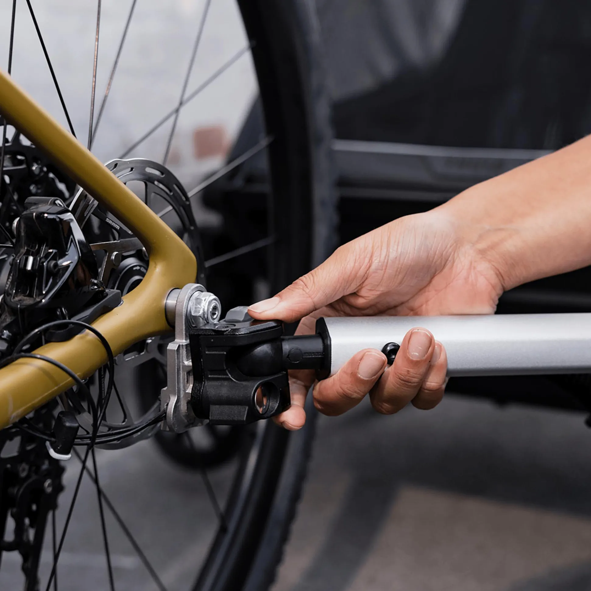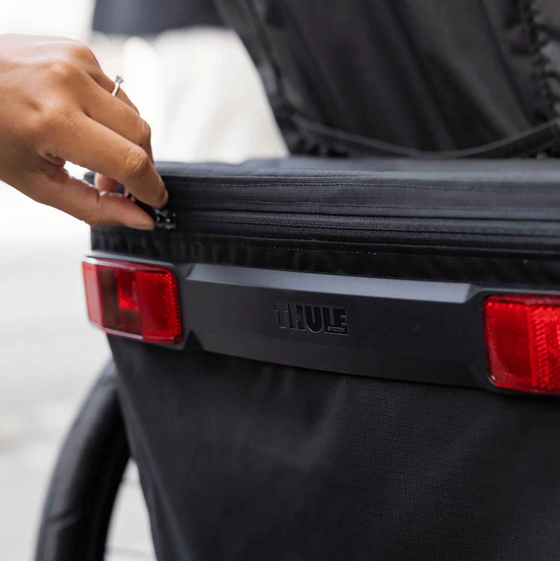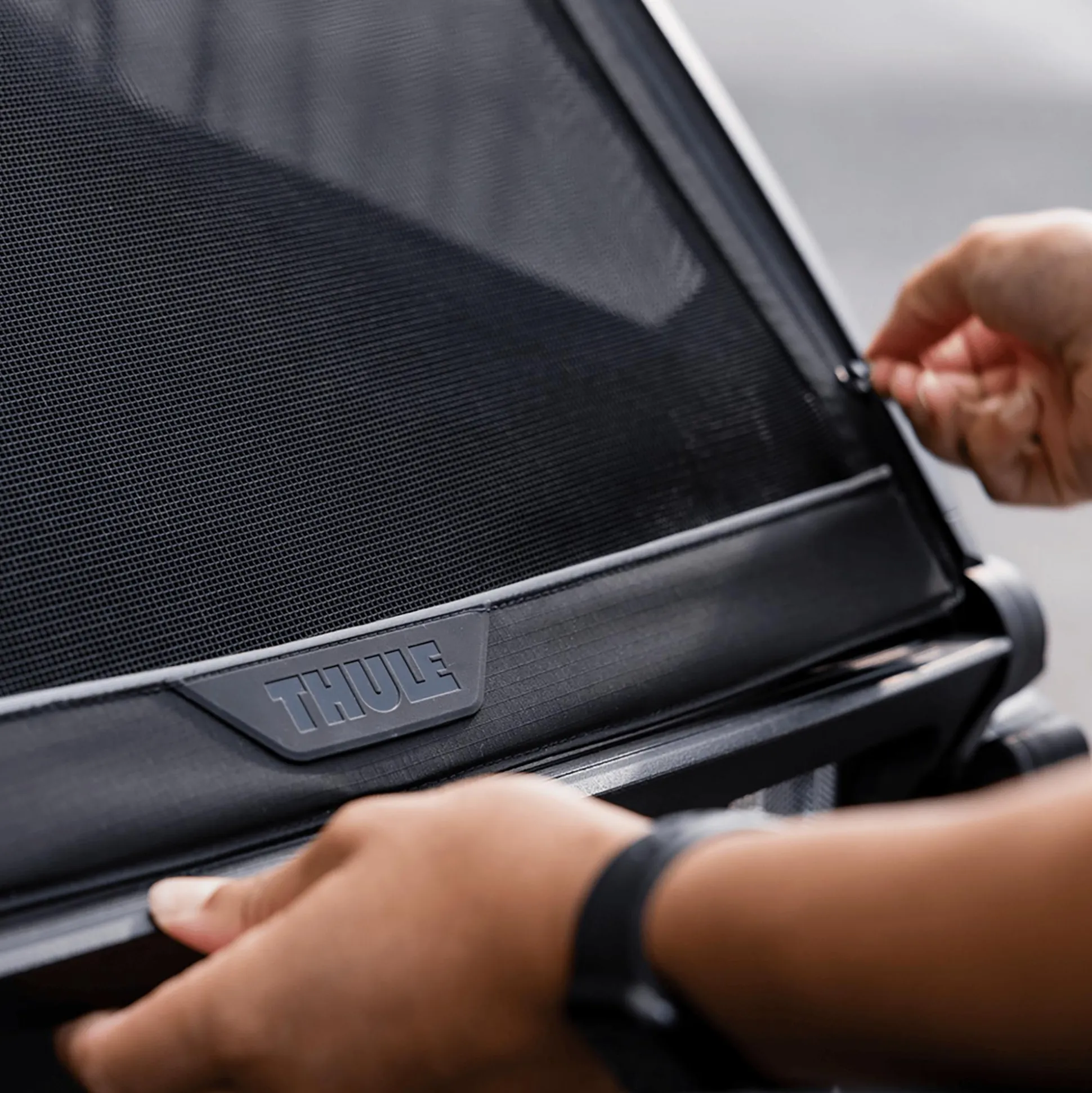 - Thule Click n’ Store bietet eine praktische Aufbewahrung der Spazier-, Jogging- und Radfahrsets am Kinderwagen, während eine andere Aktivität ausgeführt wird