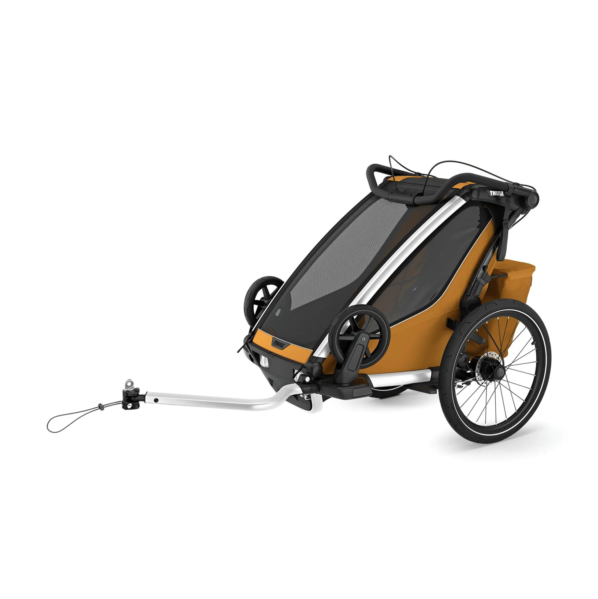 Der Thule Chariot Sport 2 Single in der Farbe Natural Gold ist ein modularer Multisport-Fahrradanhänger und Jogging-Kinderwagen in einem – für ein sicheres, einfaches und unterhaltsames Training in allen Jahreszeiten sowie mühelose alltägliche Fahrten. Ob beim Radfahren, Spazieren, Joggen oder sogar Skifahren, der Thule Chariot Sport 2 ist dein Fitness-Begleiter für jede Jahreszeit und jeden Untergrund. Mit den verbesserten Jogging- und Ski-Sets (separat erhältlich) können du und dein Kind reibungsloser und bequemer als je zuvor zwischen den Trainingsaktivitäten wechseln. Im Inneren des Thule Chariot Sport 2 Fahrradanhängers erwartet dein Kind ein weicher, ergonomisch geformter Sitz für unvergleichlichen Komfort. In Verbindung mit der branchenführenden Belüftung genießt es eine gemütliche, luftige Fahrt. Das mitgelieferte Regenverdeck sowie die Sonnenblende halten dein Kind zusätzlich trocken und schützen es vor der Sonne.