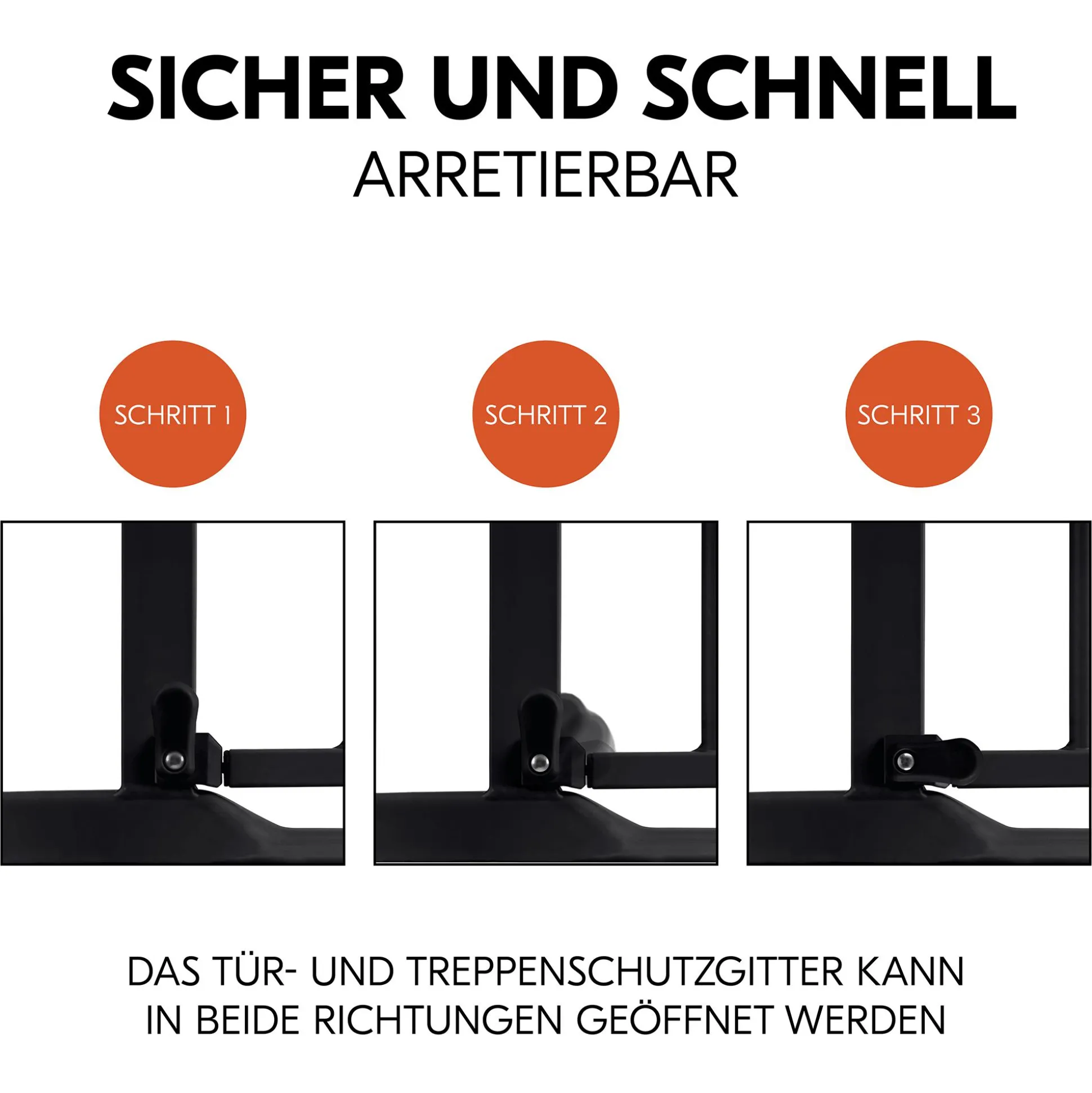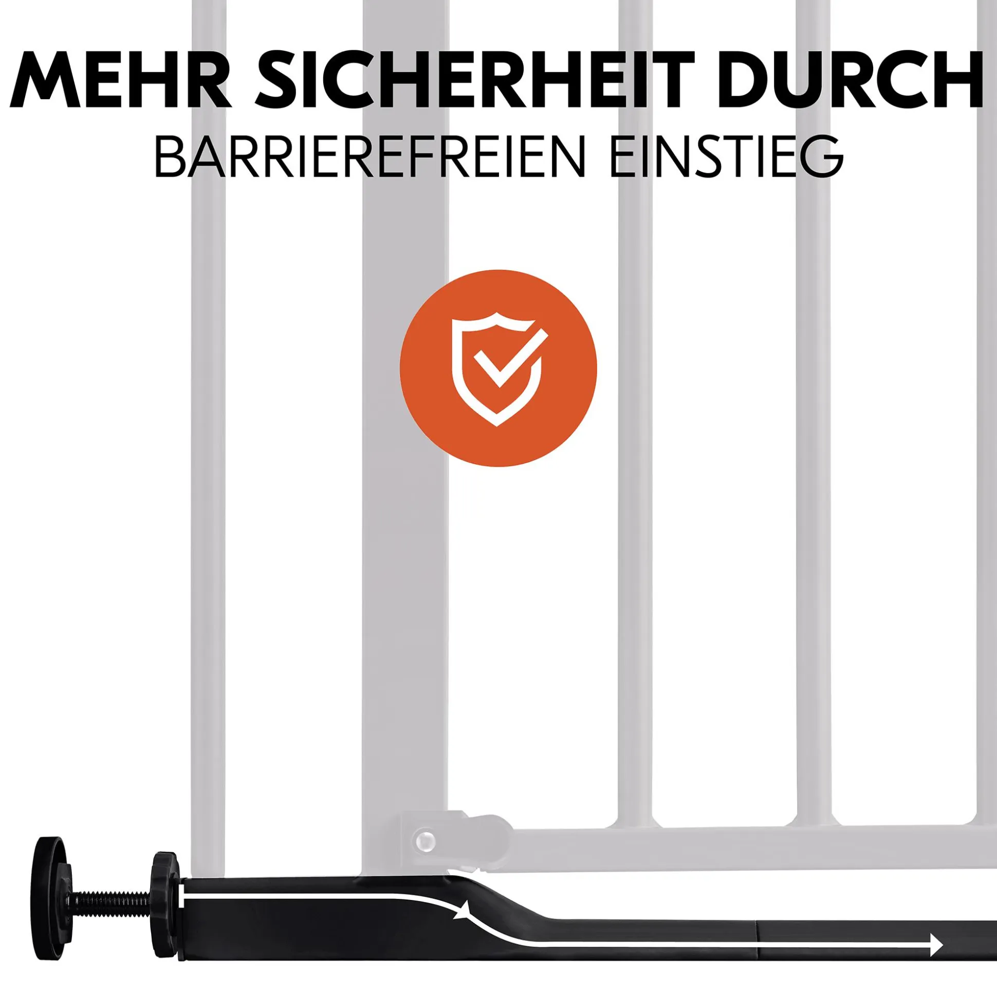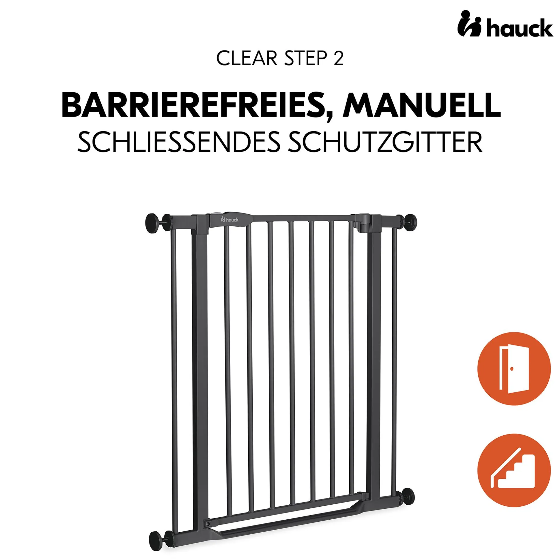 Das barrierefreie, manuell schließende Tür- & Treppenschutzgitter Clear Step 2 Black von hauck bietet deinem kleinen Liebling höchste Sicherheit und einen niedrigen Einstieg.