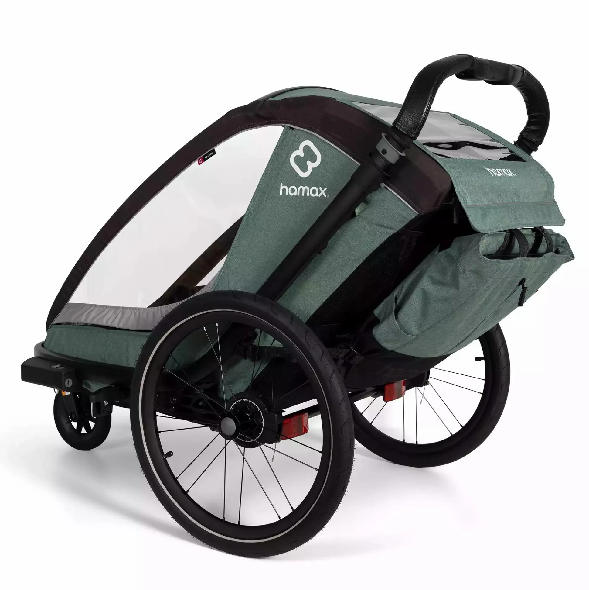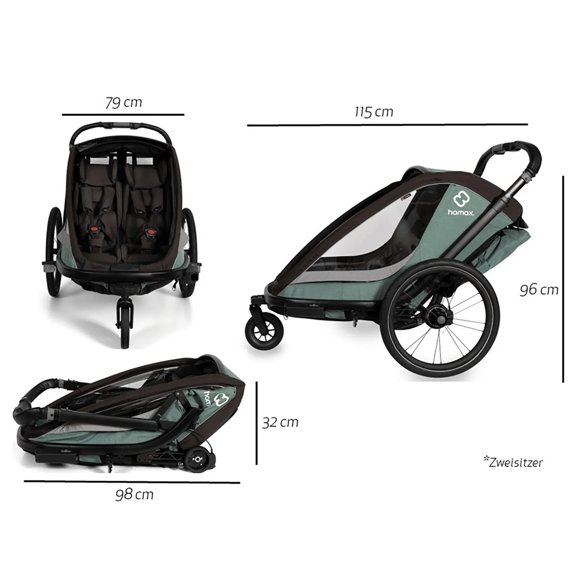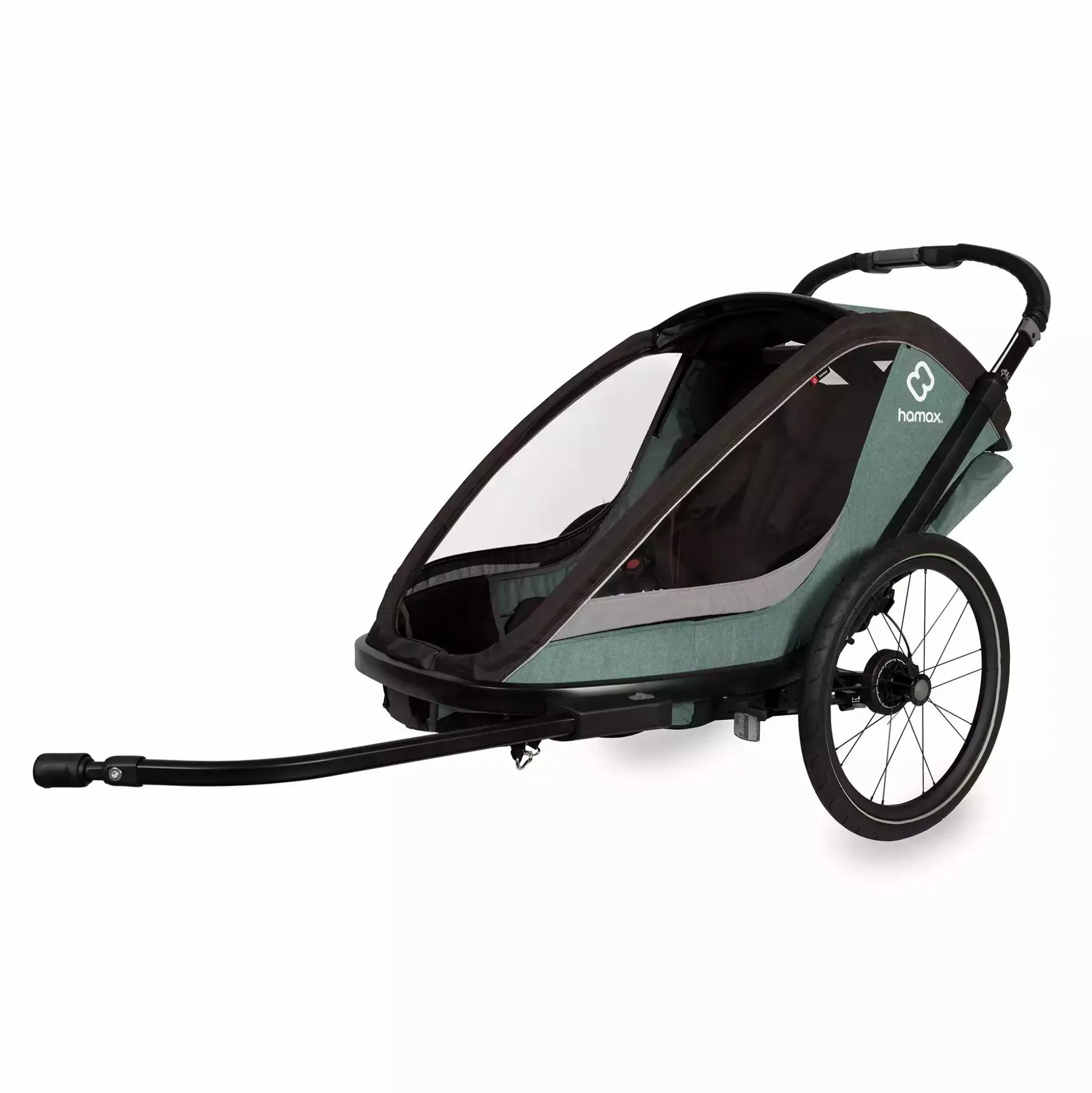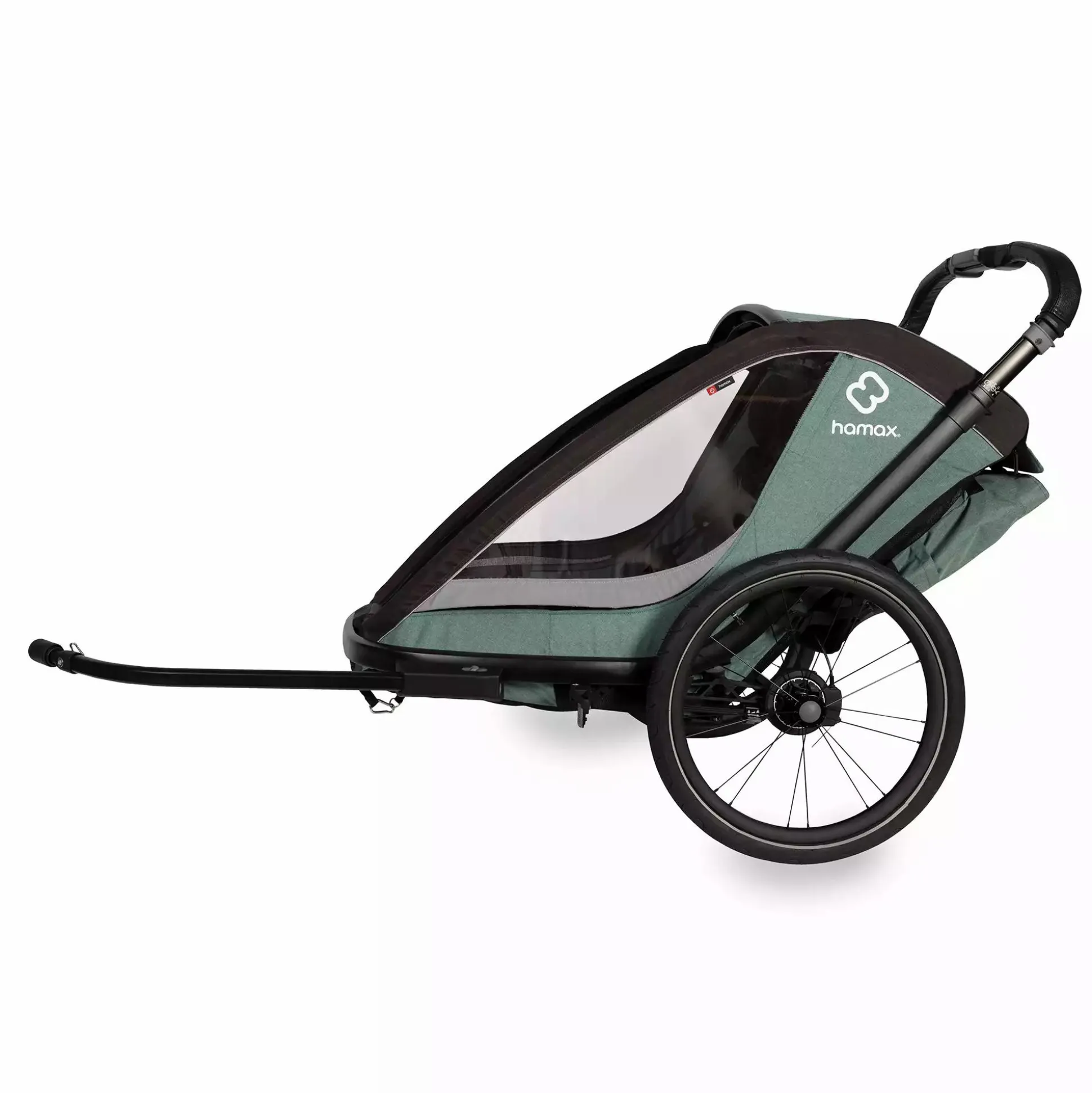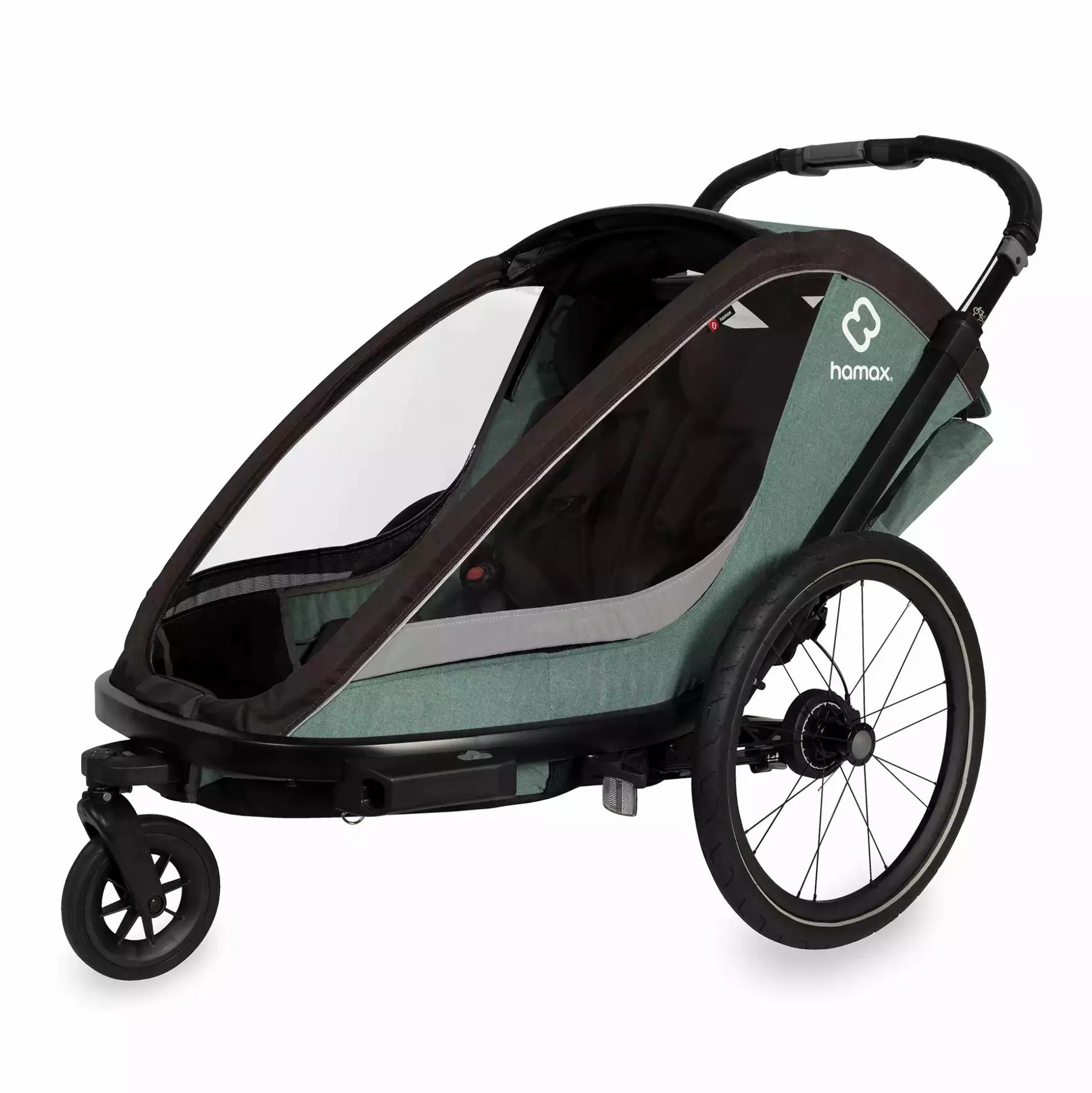 Apropos: Der Cocoon ist mit der Hamax Babyschale kompatibel und kann außerdem – mit separat erhältlichem Jogger Kit – auch beim Laufen genutzt werden. Ganz unabhängig davon, ob du dich für diesen Zweisitzer entscheidest oder nur einen Einsitzer benötigst: Bestelle jetzt dein gewünschtes Modell in Grün/Schwarz oder alternativ in Grau/Schwarz!