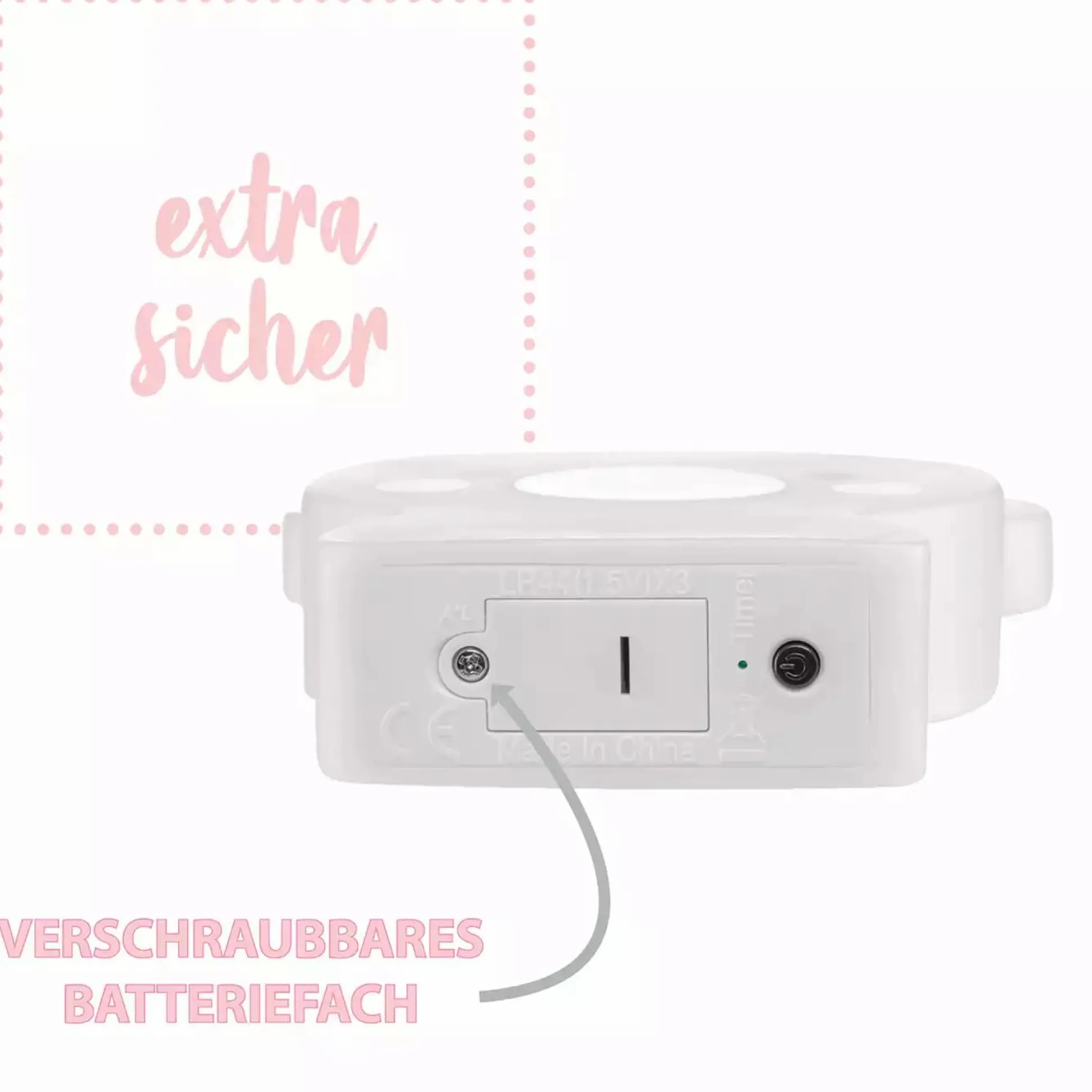 - besonders kindersicher, dank verschraubbarem Batteriefach