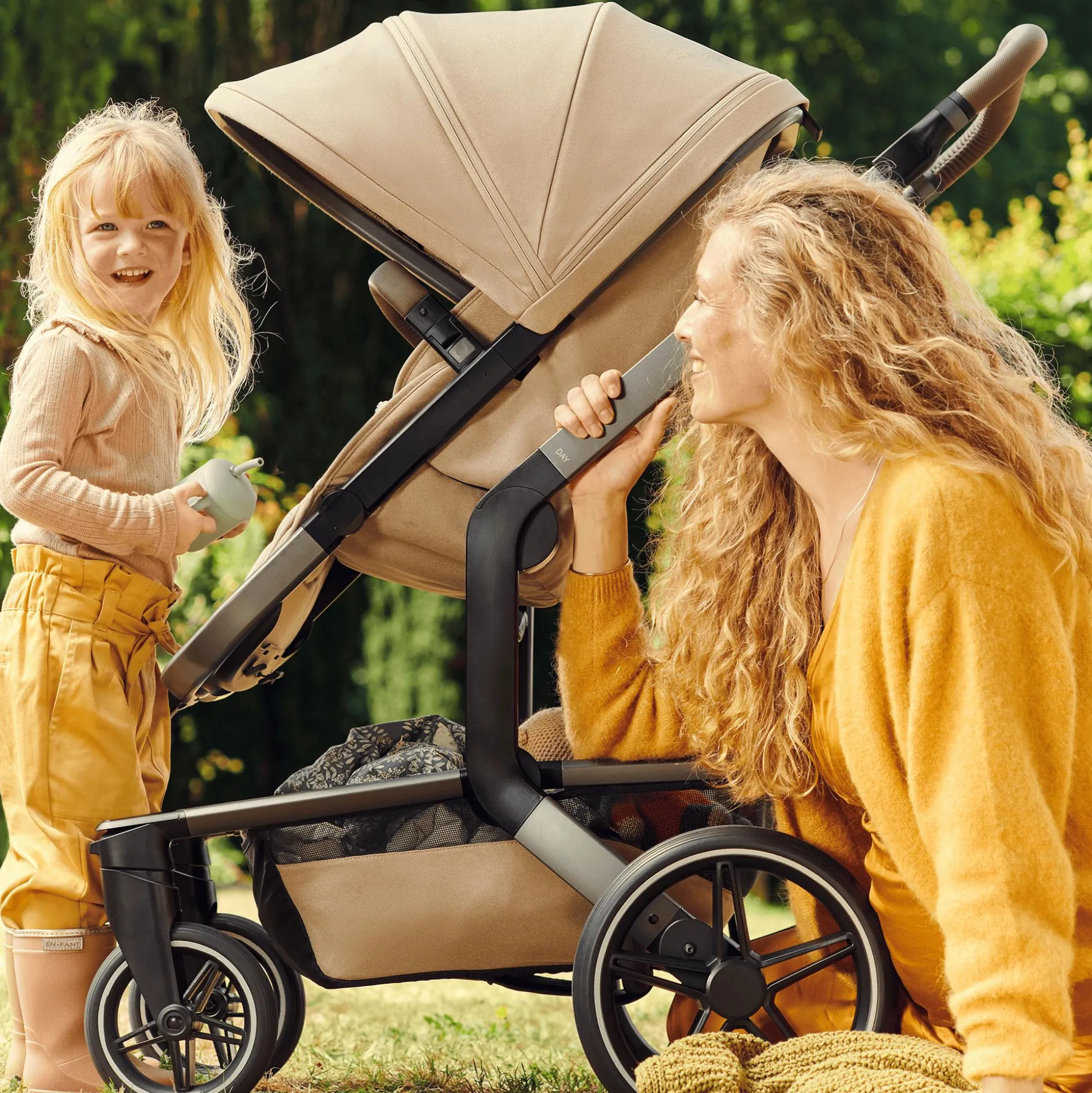 Von der verbesserten, einhändig abnehmbaren Babywanne mit hypoallergener Matratze über das XXL-Sonnenverdeck mit verschließbarem Fenster, den ergonomischen Sitz mit einhändig verstellbarer Rückenlehne bis zum flachen Liegen sowie die extrahohe Positionierung des Schiebegriffs bis zum verbesserten Fahrgestell mit neuen Bremsen, neuen Reifen, optimierter Federung und praktischem Arretier-Automatismus nach dem Zusammenfalten: Der Day⁵ ist das Ergebnis einer konsequenten Weiterentwicklung sämtlicher Vorgängermodelle und begeistert mit innovativen Verbesserungen.