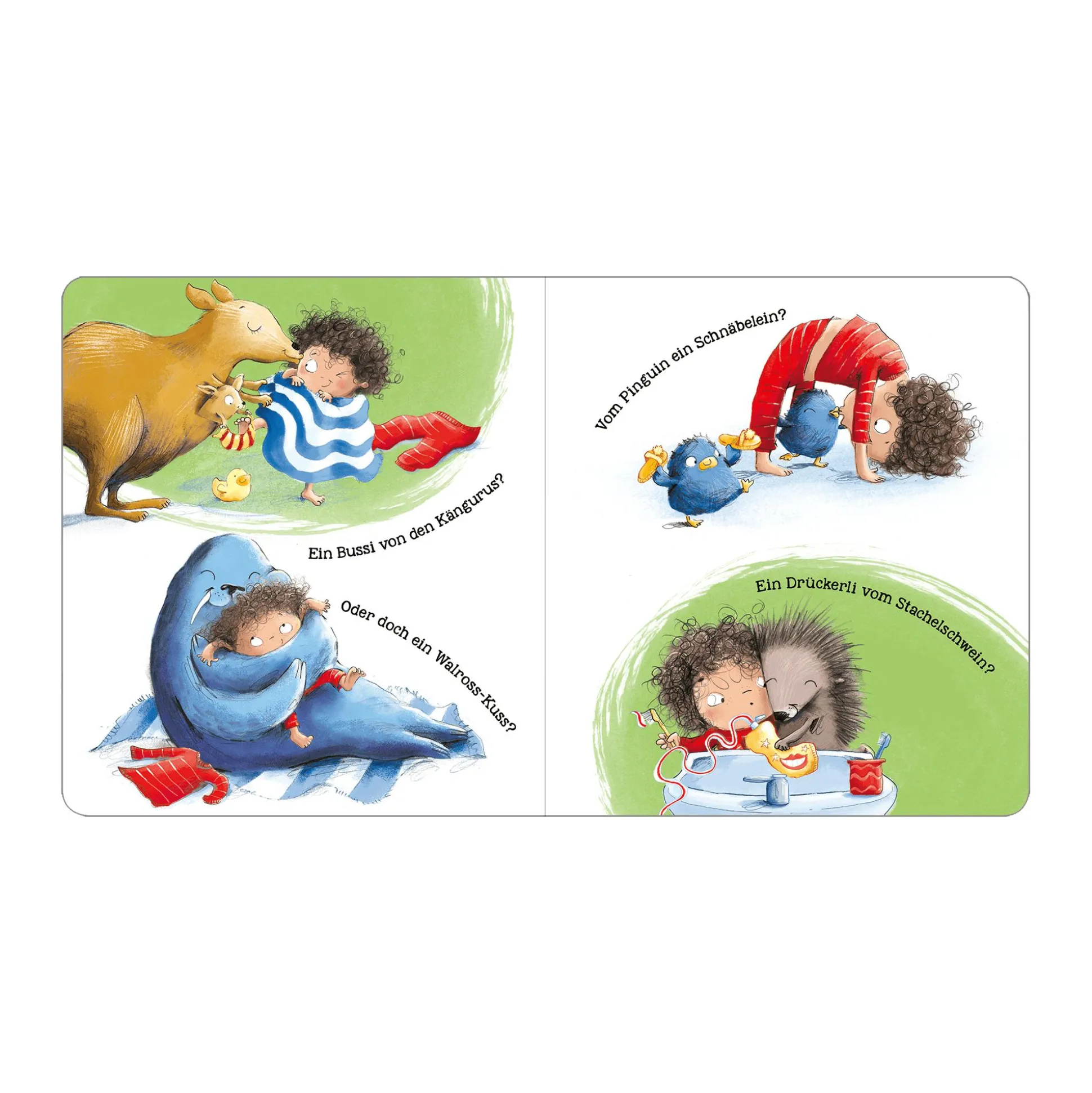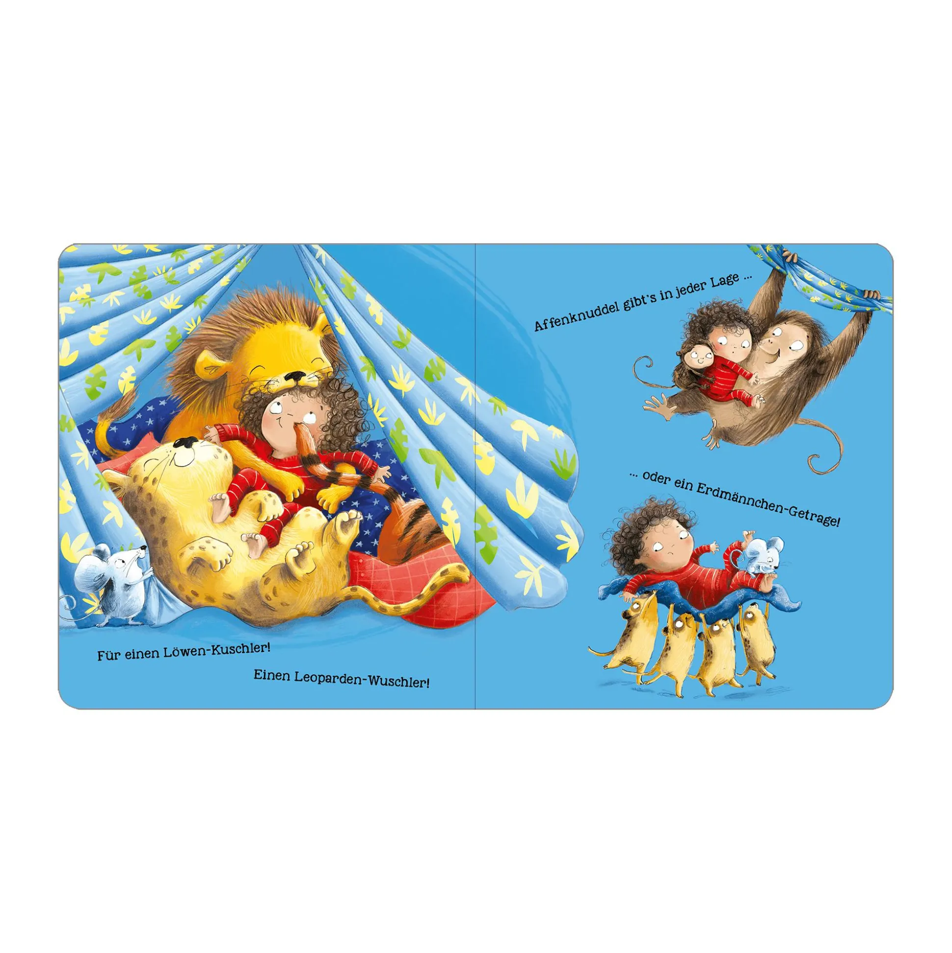 - liebevolle Tierillustrationen begleiten die Suche nach der perfekten Umarmung