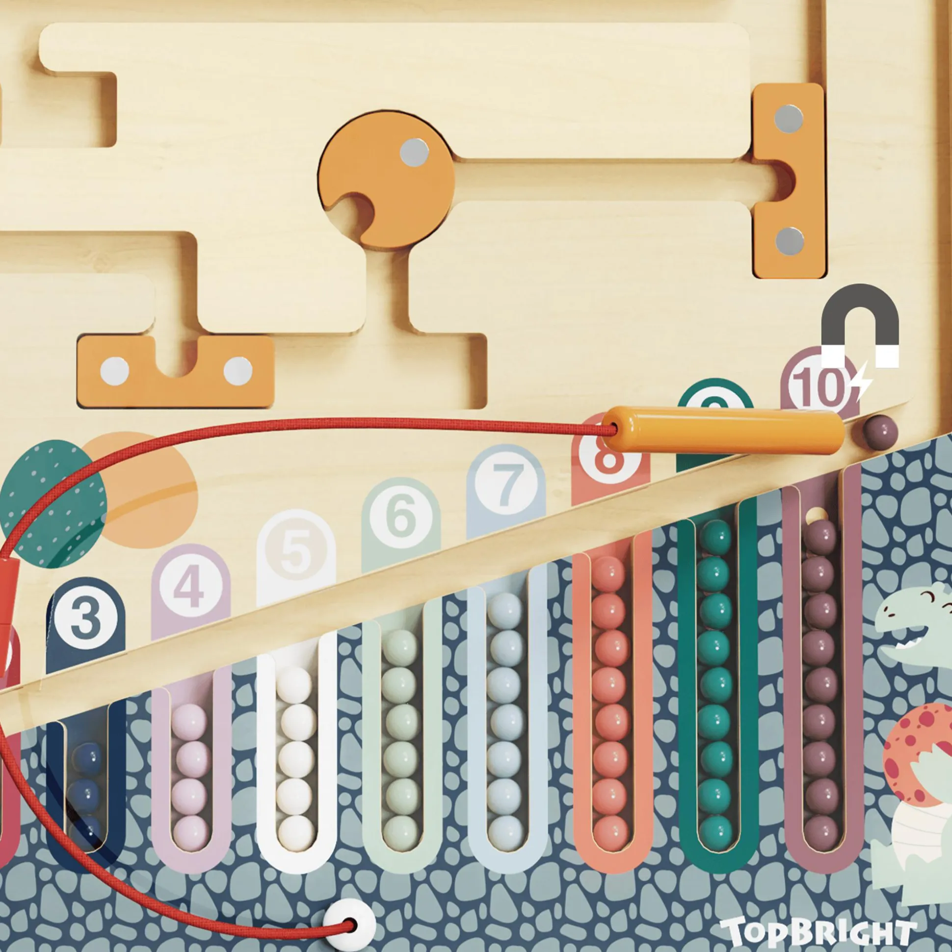 Das Dino Eier Labyrinth von TOPBRIGHT lässt dein Kind ab etwa drei Jahren in eine aufregende Dino-Welt eintauchen. Mit einem Magnetstift hilft es dem Dino, die bunten Eier durch das Labyrinth in Sicherheit zu bringen, bevor der Vulkan ausbricht. Dabei werden die Eier durch verschiedene Hindernisse geführt und nach Farben sowie Zahlen sortiert. Die nummerierten Nester bieten eine spannende Herausforderung, bei der dein Nachwuchs spielerisch die Grundlagen der Farberkennung und Zahlen erlernt. Das Magnetspiel fördert außerdem die Feinmotorik, Hand-Augen-Koordination, Konzentration und Geduld.
