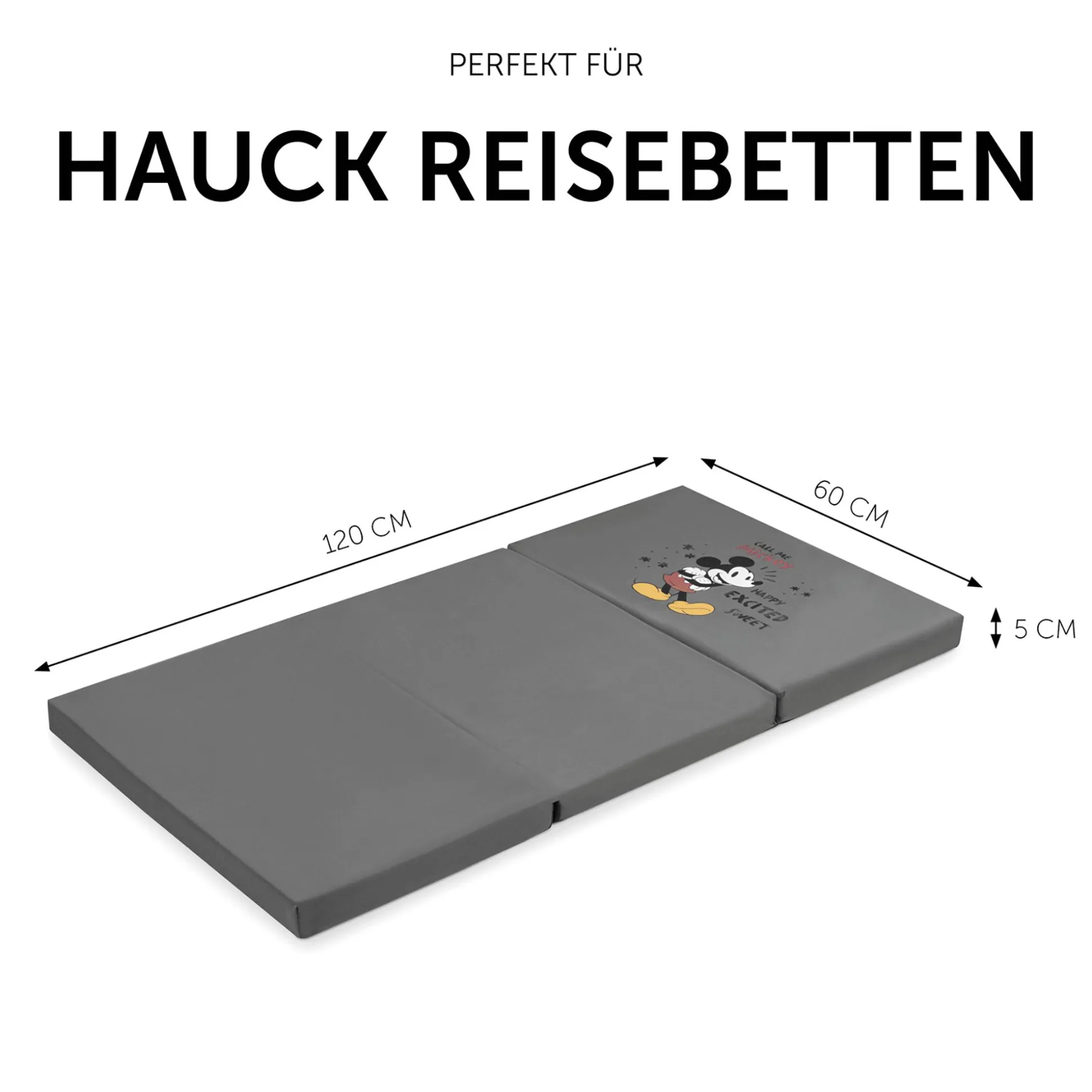 Für den Transport lässt sich der hauck Disney Sleeper Mickey Mouse zusammenklappen und praktisch in der mitgelieferten Tragetasche verstauen – so kann er ganz einfach überall mit hingenommen werden. Ergänzend zu dieser Matratze ist das passende Spannbettlaken „Bed Me“ in einer Größe von 120 x 60 cm zum Schutz des Sleepers separat erhältlich.