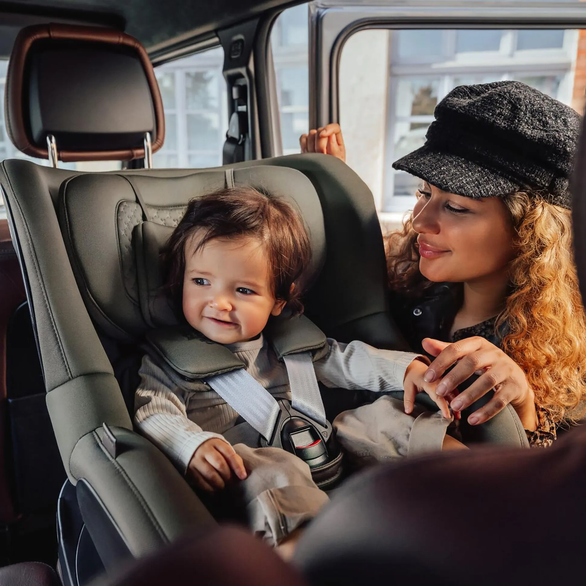 - Befestigung im Fahrzeug per (separat erhältlicher) FLEX BASE 5Z mit ISOFIX-Verankerung und Stützbein für zusätzliche Stabilität