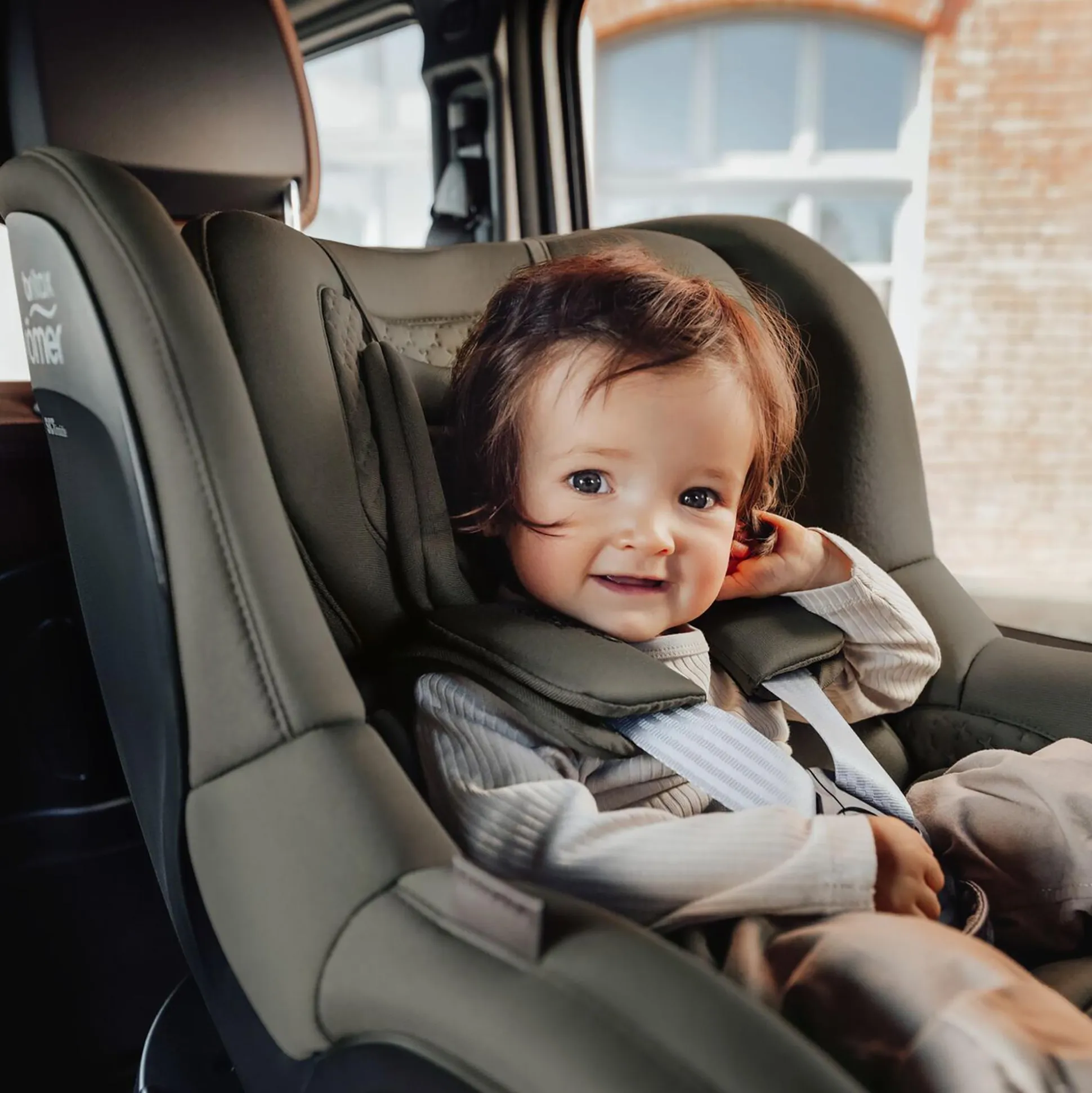 Dein Kind ist mittlerweile aus dem BABY-SAFE PRO oder einer anderen Babyschale herausgewachsen? – Dann kann der DUALFIX 5Z LUX von Britax Römer als Folgesitz zum Einsatz kommen. Bis zu einem Alter von ca. vier Jahren schützt er deinen kleinen Fahrgast auf jeder Autofahrt hervorragend.Das Wichtigste für dich als Elternteil zuerst: Welchen Schutz bietet dieser Kindersitz? Zum einen wurde die Seitenaufprallschutz-Technologie SICT inside integriert. Bei einem Zusammenstoß werden die entstehenden Kräfte durch diesen Schutz abgeschwächt und von deinem Kind weggeleitet. Zudem sorgt sie für eine erhöhte Sicherheit in jedem Winkel. Auch beim Zurücklehnen oder Drehen des Sitzes ist dementsprechend keine Anpassung nötig. Zum anderen kann dein kleiner Schatz länger rückwärtsgerichtet fahren. So ist dein Kind bei einer Frontalkollision besser geschützt. Die Aufprallkraft wird gleichmäßig auf den Kopf, den Hals und den Körper verteilt, was deinen Liebling vor Verletzungen schützen kann. Auch der 5-Punkt-Gurt, mit dem dein Kind in dem Sitz gesichert wird, mildert die Kräfte bei einem Zusammenstoß ab. Für zusätzlichen Schutz sorgen die weichen, gepolsterten Seitenwangen, die Spezial-Schulterpolster sowie die V-förmige Kopfstütze. Diese dämmt nämlich die Bewegungen deines Kindes im Falle eines Unfalls ein und schützt den Hals.Apropos Kopfstütze: Sie kann, genauso wie der Gurt, individuell verstellt werden. So hat es dein Kind unabhängig von seiner Größe immer bequem. Doch das ist nicht der einzige Komfort, der deinem Kind geboten wird: Der weiche Lux Premium-Einsatz und das gepolsterte Kopfteil bieten zusätzlichen Halt. Damit dein Kind bei einer längeren Autofahrt auch entspannt schlafen kann, bietet der DUALFIX 5Z jeweils sechs Ruhepositionen für das vorwärts- oder rückwärtsgerichtete Fahren, die leicht verstellbar sind.Für die Installation des Sitzes bietet die VARIO BASE 5Z einige Vorteile. Die ISOFIX-Konnektoren der Base können unabhängig voneinander installiert werden, was dir einen mühelosen Einbau gewährleistet. Zudem hast du durch die Base die Möglichkeit, dass der Sitz um 360° gedreht werden kann, was das Anschnallen deines Babys erleichtert. Ein höhenverstellbares Stützbein gibt dem Kindersitz zusätzliche Stabilität und minimiert unerwünschte Kippbewegungen des Sitzes. Mithilfe eines Indikators weißt du auch immer, ob du das Stützbein korrekt positioniert hast.Falls es auf der Autofahrt mal etwas holpriger wird und dein Kind aus Versehen etwas verschüttet, kann der Bezug ganz einfach abgenommen und in der Waschmaschine gewaschen werden. Den Gurt musst du dafür nicht einmal abmachen.Die LUX COLLECTION von Britax Römer vereint elegantes Design mit überragendem Komfort. Sie vereint drei luxuriöse Stoffe – weich, gewebt und mit 3D-Sternprägung – alle Ton-in-Ton, ergänzt durch Kunstlederdetails. Gefertigt aus nachhaltigen, recycelten Materialien, sorgt sie dafür, dass Dein Kleines stilvoll und bequem unterwegs sein kann.