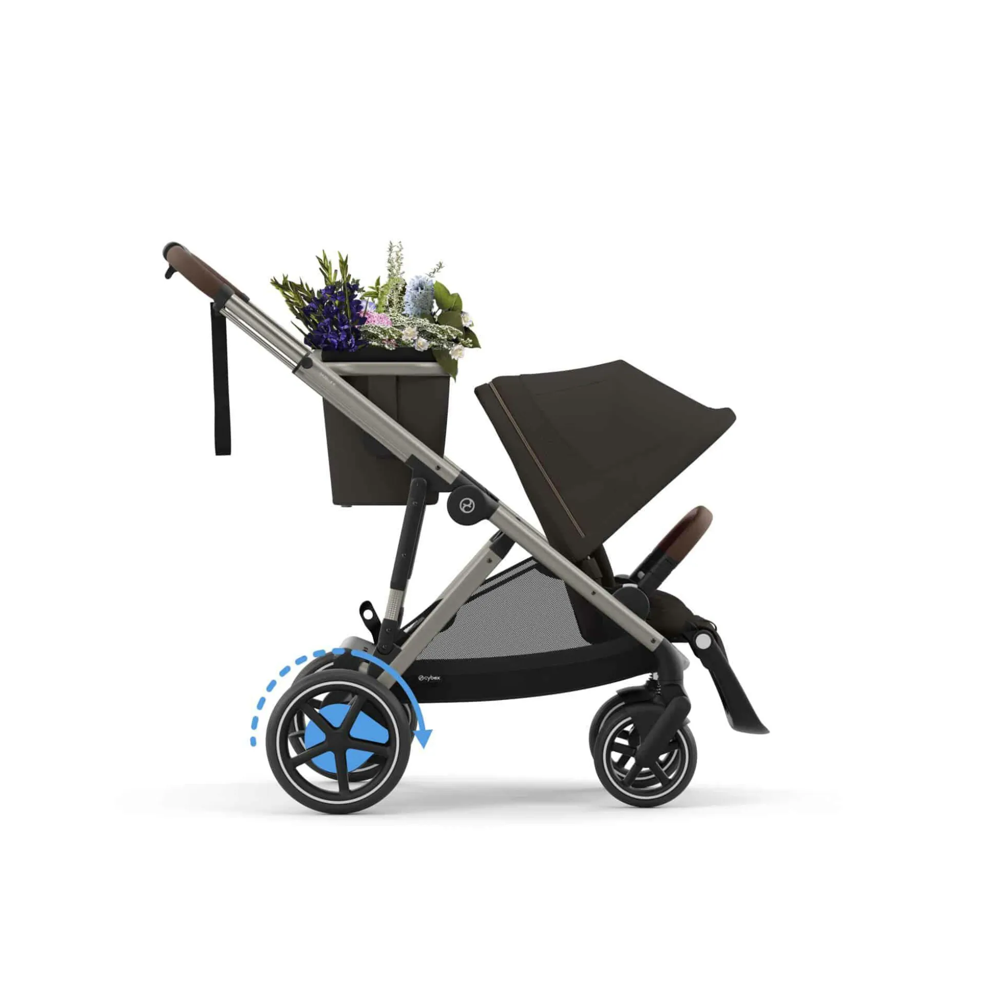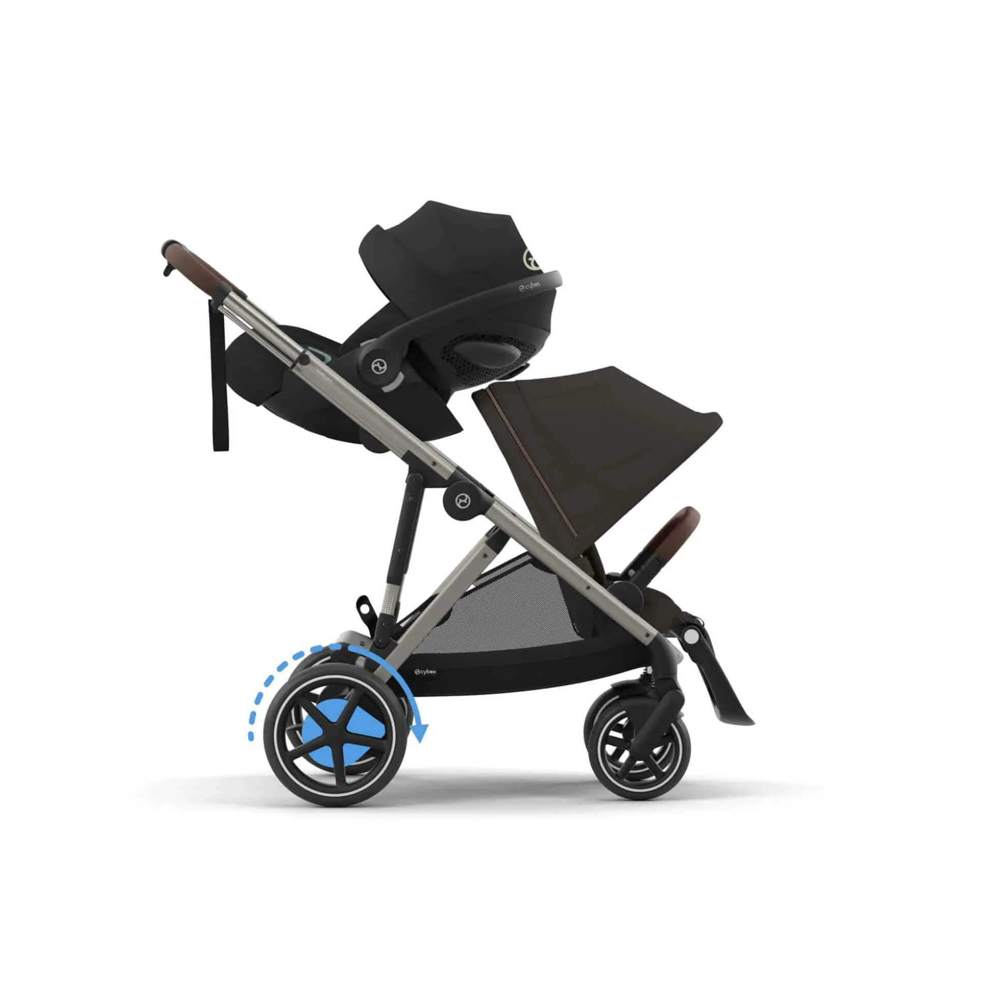 Mit über 20 Konfigurationsmöglichkeiten passt sich der e-Gazelle S von Cybex flexibel an deine Bedürfnisse an, ganz gleich, ob du ein oder zwei Kinder dabei hast – und das in jeder Wachstumsphase. Du kannst den e-Gazelle S ganz einfach vom Einzel- in einen Geschwister-Kinderwagen verwandeln. Babywannen, Sitzpakete oder Babyschalen können so angebracht werden, wie du sie benötigst. Die großzügige ca. 23 kg-Ladekapazität des integrierten Einkaufkorbs sowie des abnehmbaren Shoppers bietet ausreichend Platz für alles, was du unterwegs benötigst: Windeln, Snacks und mehr – und dank des E-Antriebs kommst du stets leicht voran.