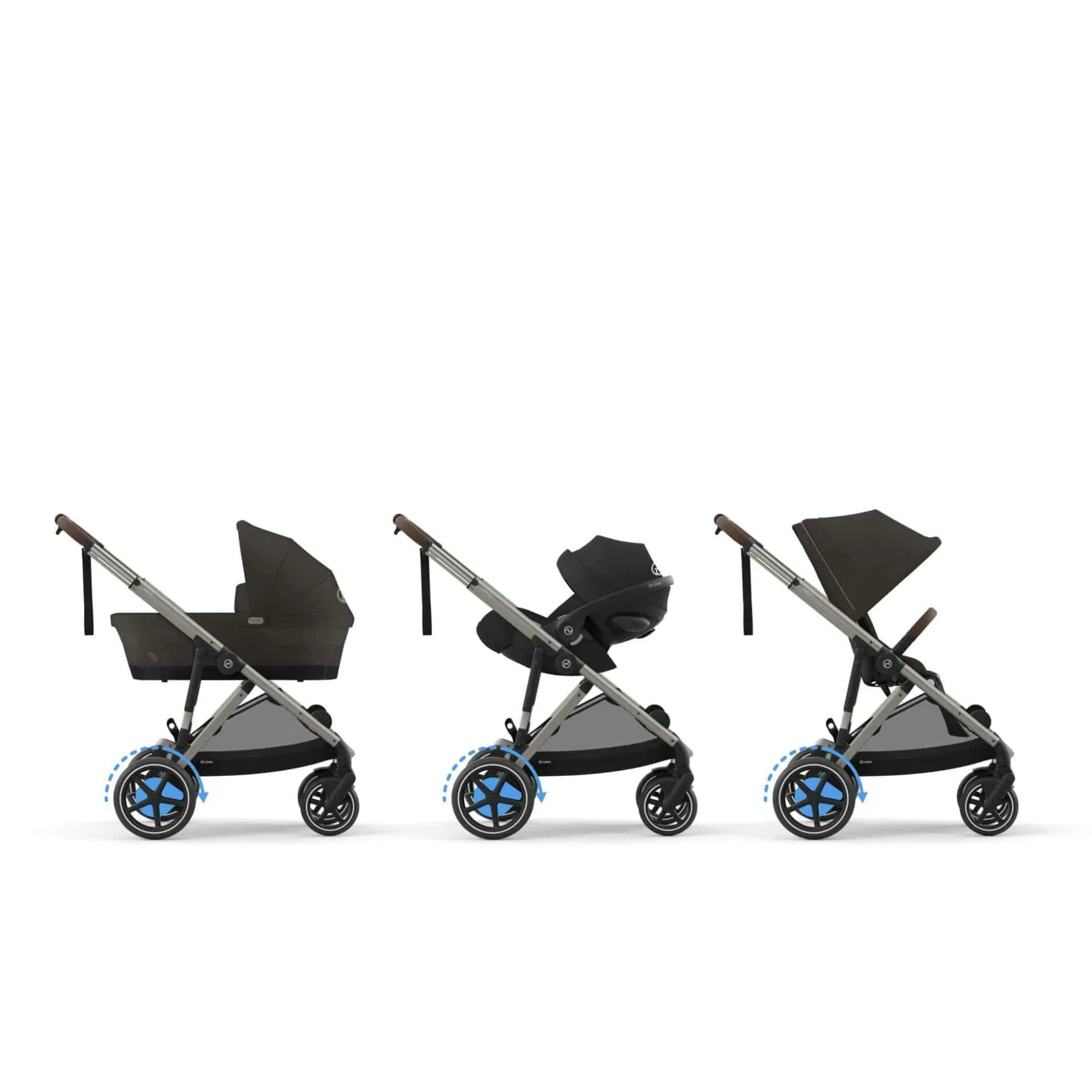- ergänzendes Zubehör (separat erhältlich): Gazelle S Babywanne & Sitzpaket, Gazelle S Regenverdeck, CYBEX Babyschalen (mit Adaptern), Babyschalen Adapter, Getränkehalter, 2in1 Getränkehalter, Summer Seat Liner, Newborn Nest, Gold Fußsack & Snogga 2, Kinderwagen Sonnenschirm