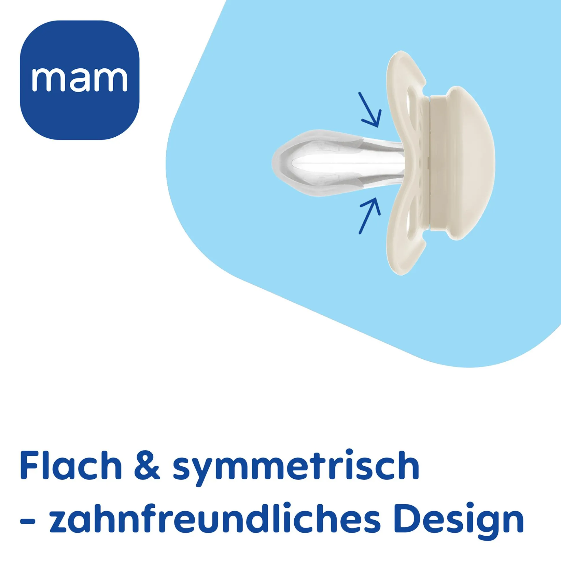 Vor oder nach der Mahlzeit kann dein Liebling dann mit einem Schnuller beruhigt werden. Dabei steht bei MAM die Zahngesundheit im Vordergrund: Die Schnuller werden in Zusammenarbeit mit Zahnmediziner*innen entwickelt. Das schmale Saugteil passt sich dem Kiefer optimal an und ist besonders zahnfreundlich und kiefergerecht. Mit seiner symmetrischen Form liegt der Schnuller nie falsch herum im Mund. Zudem beugen die großzügigen Belüftungslöcher und abgerundeten Ränder Abdrücke und Hautreizungen vor. Kein Wunder also, dass 94% der Babys den MAM SkinSoft Sauger instinktiv akzeptieren.