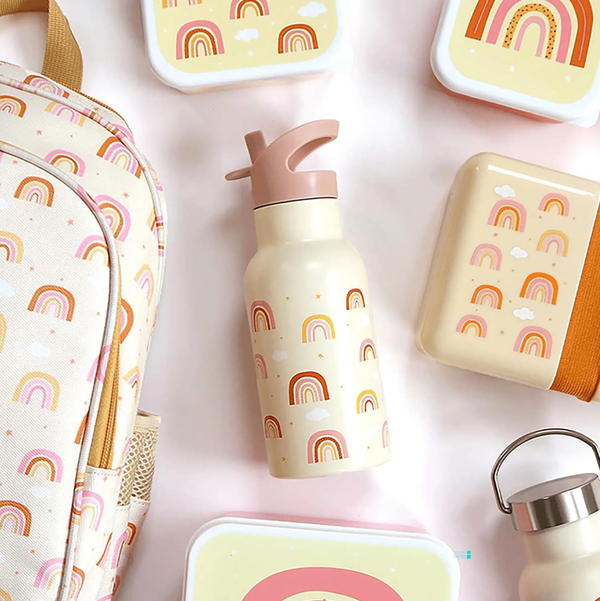 Ein tolles Regenbogen-Design auf der Trinkflasche wird dein Kind sofort von sich überzeugen!