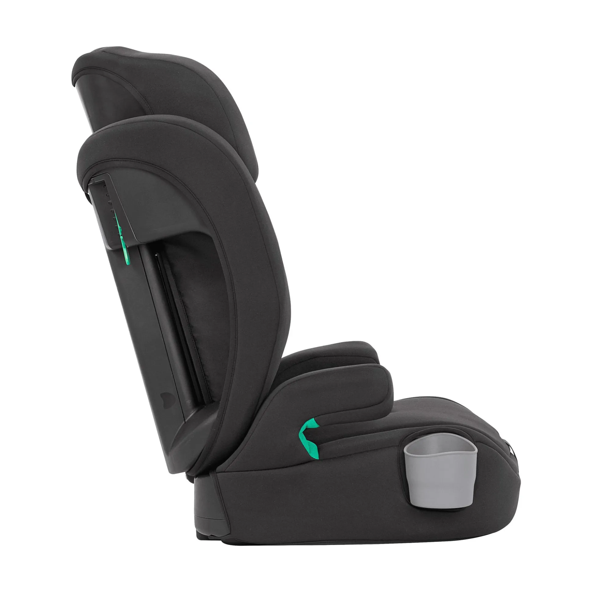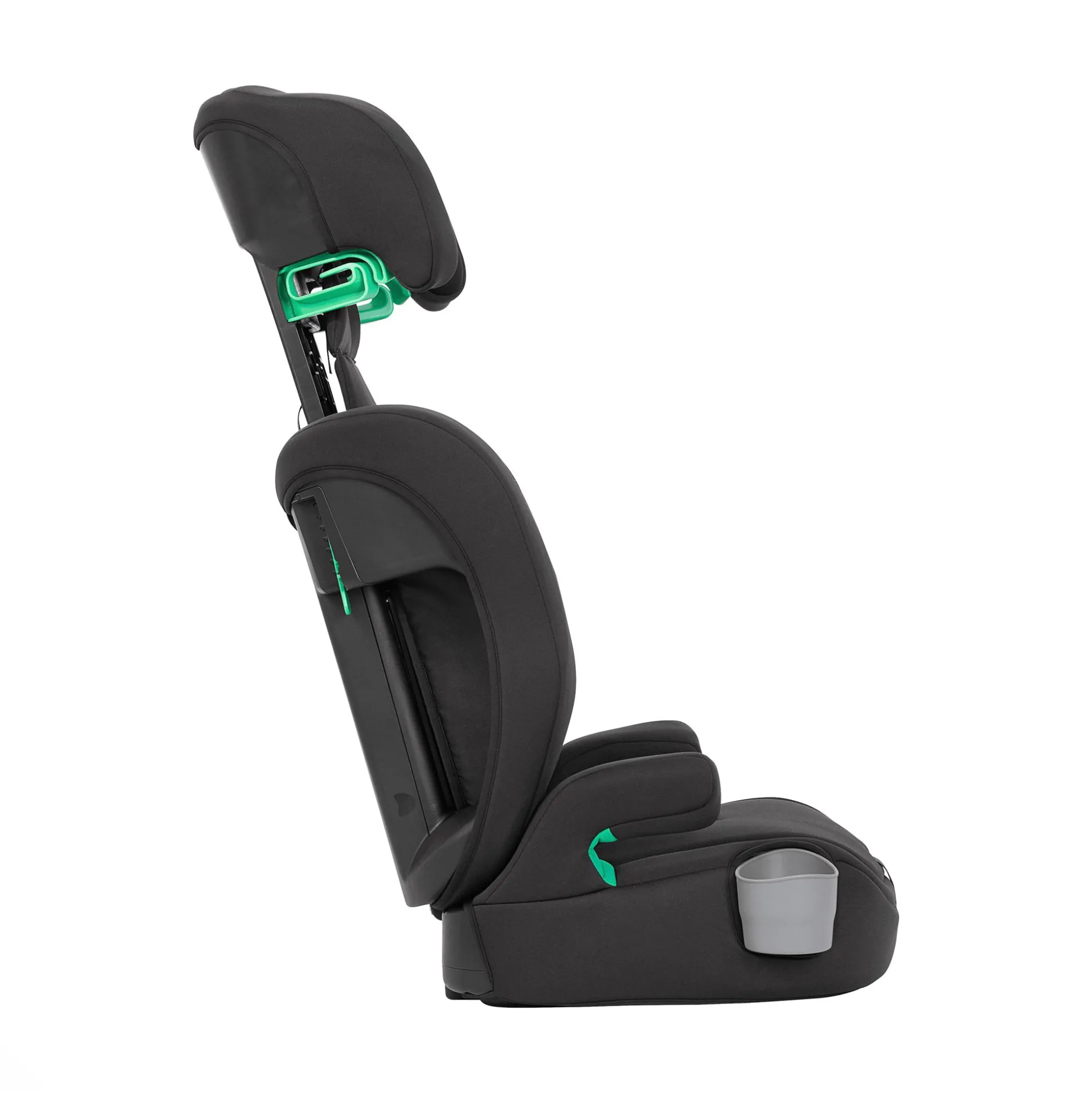- grün gekennzeichnete Gurtführungshilfen und Befestigungsclips für den Fahrzeuggurt auf der Rückseite machen das sichere Anschnallen einfach und intuitiv