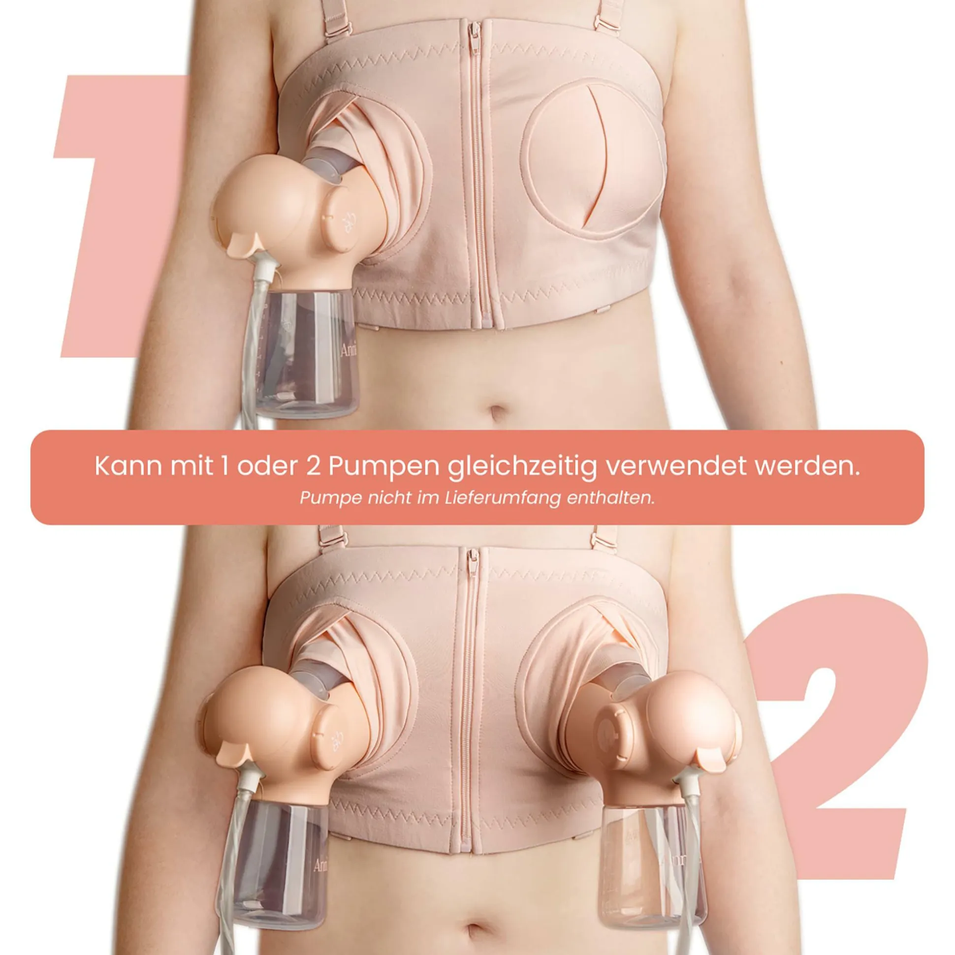 Dank des mitgelieferten Hands-Free-BHs hast du die Hände frei für dich oder dein Baby – Komfort, den du sofort spürst. Die verstellbaren Silikonaufsätze (ca. 18–24 mm) passen sich flexibel deiner Brust an und machen jede Pump-Session angenehm.