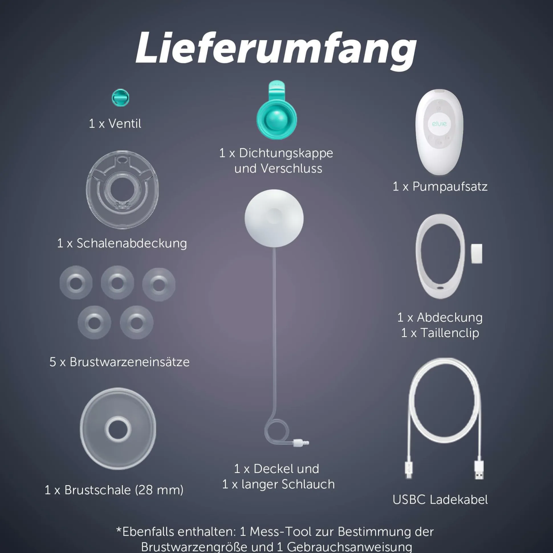 - inklusive 6 verschiedener Größenoptionen (Brustschale 28 mm und 5 Paar Brustwarzeneinsätze 15-24 mm)