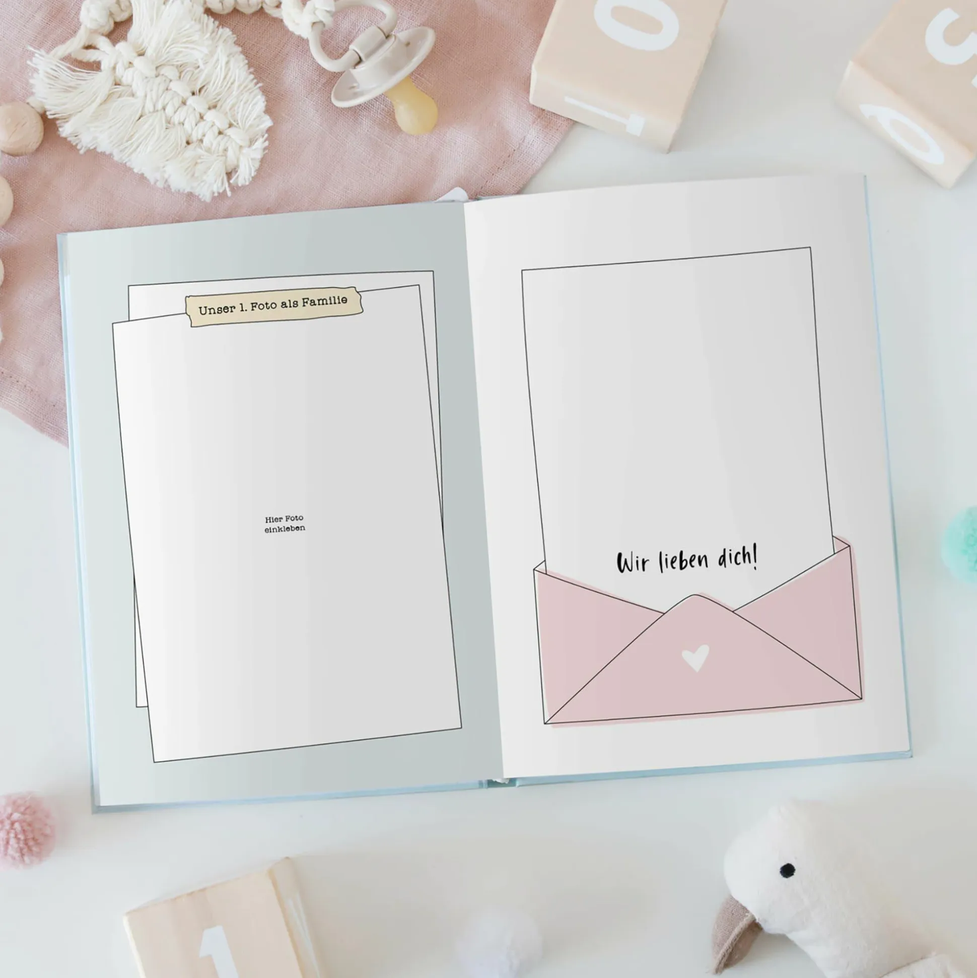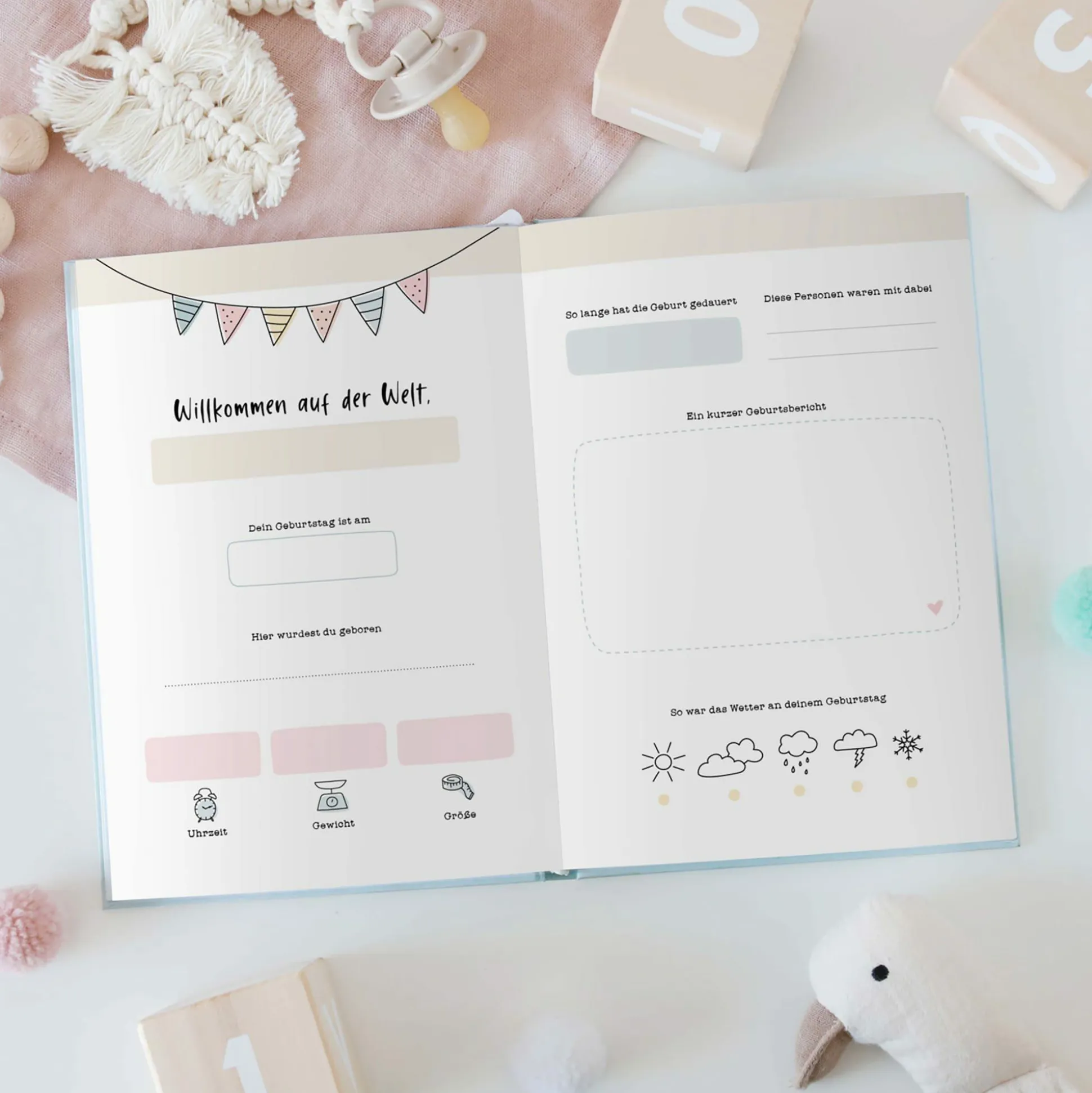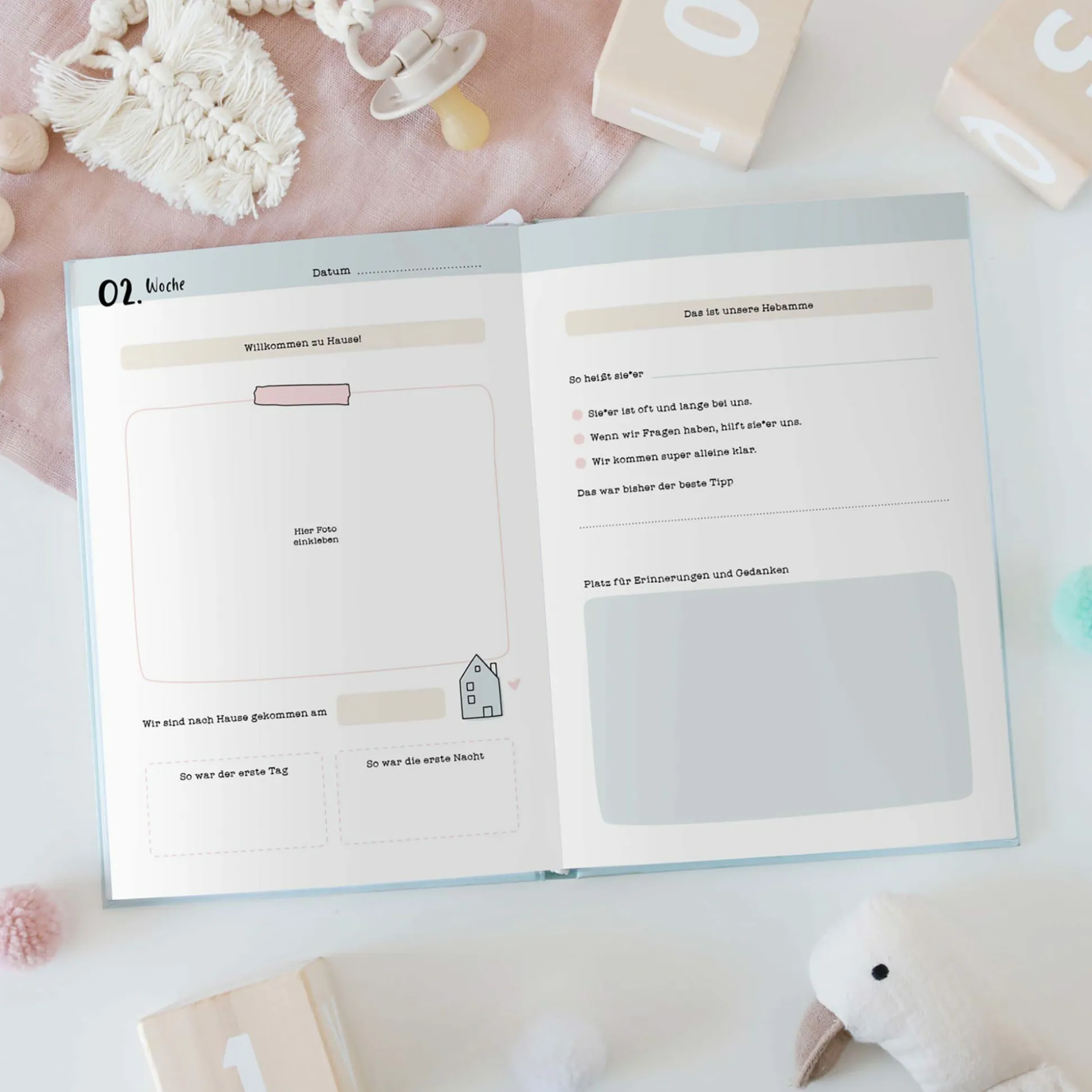 - Eintragalbum zum Dokumentieren der wichtigsten Entwicklungsschritte in den ersten 12 Lebensmonaten