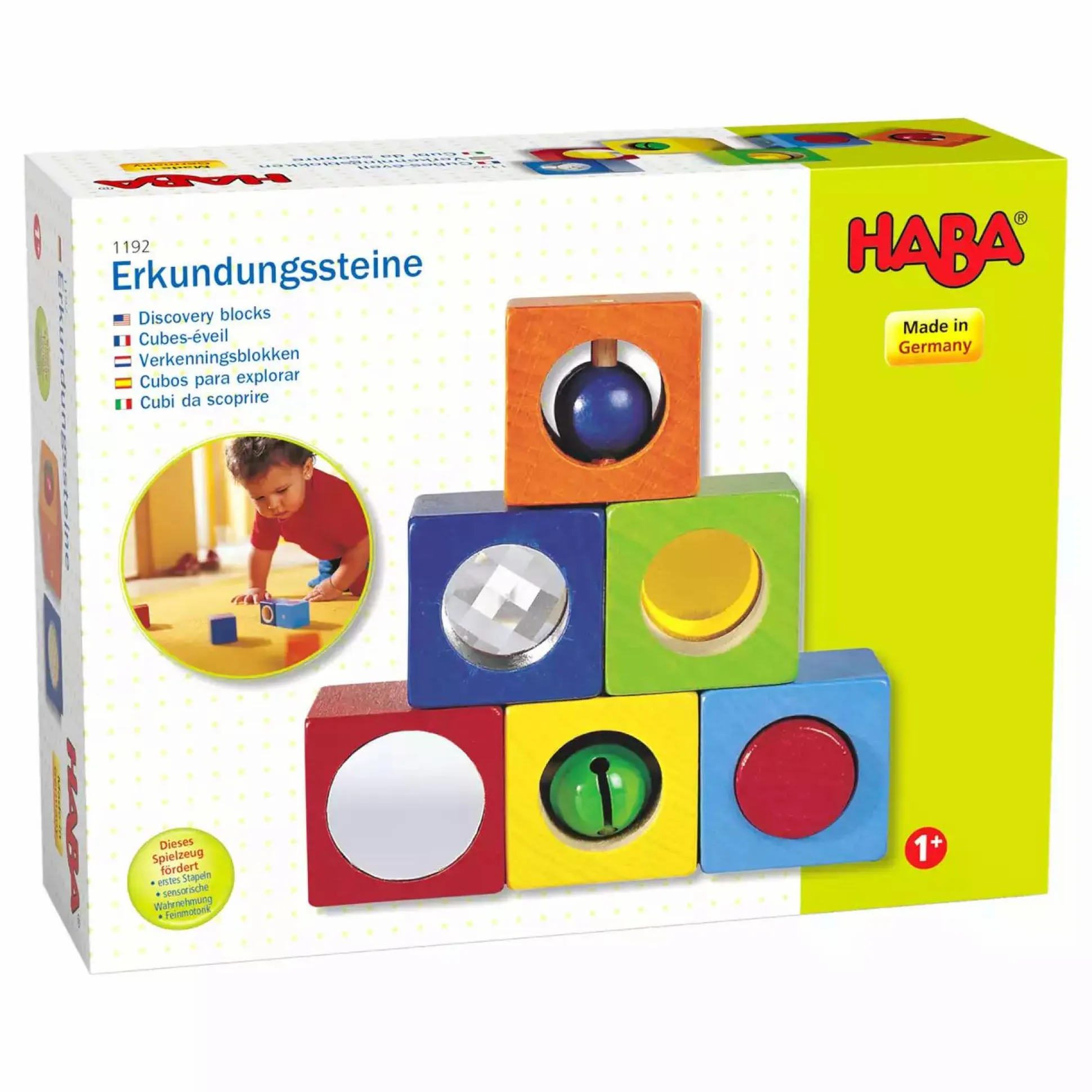 Deine kleinen wollen alles in die Hand nehmen und ganz genau untersuchen. Dafür sind die Haba-Erkundungssteine ideal. Die sechs großen Bausteine aus Buche lassen sich schön greifen und zudem gibt es viel zu entdecken: Hier klingt ein Glöckchen, dort bewegt sich eine Kugel. Der Spiegel glänzt so schön und durch das Prismenglas und die gelbe Scheibe sieht die Welt ganz anders aus.