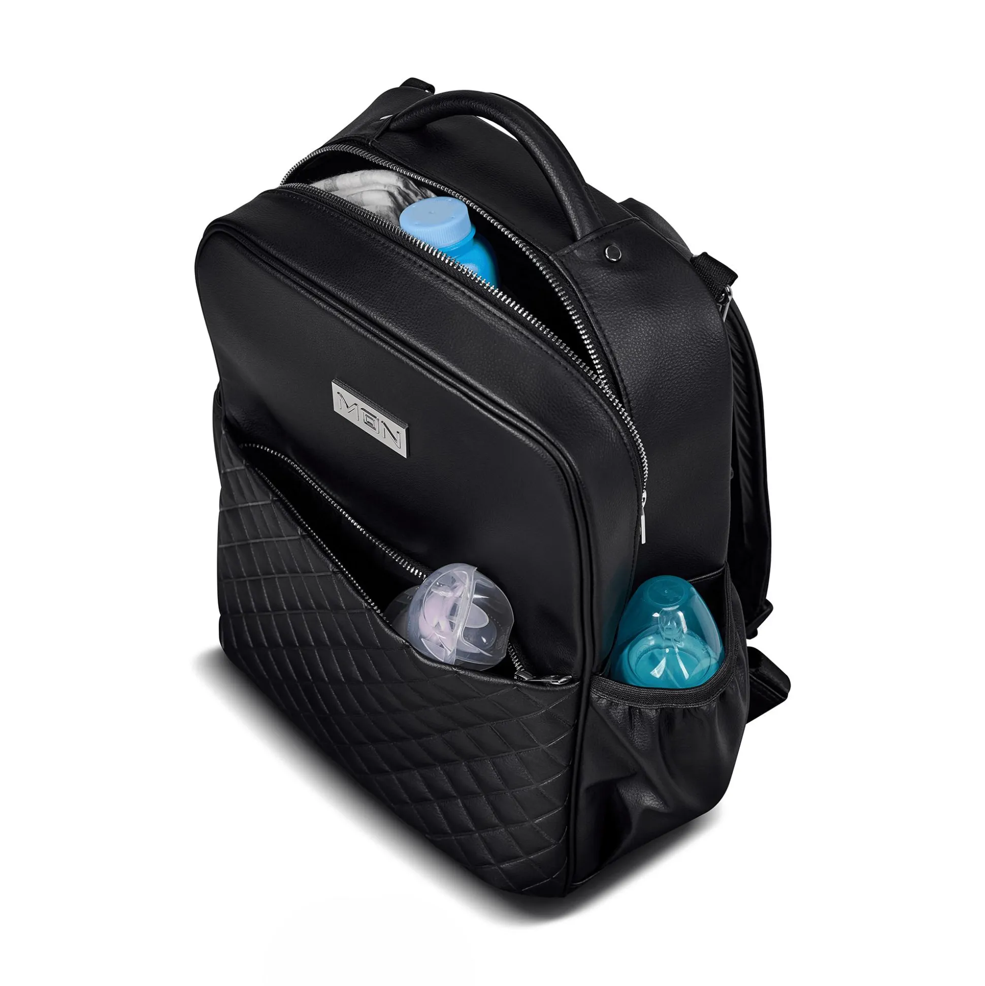 Der Fashion Backpack von MOON ist das ideale Accessoire für stilbewusste Eltern. Mit seinem eleganten Design in zeitlosem Schwarz, angereichert durch edle Kunstleder-Details und Stepp-Muster, kombiniert dieser Rucksack trendige Optik mit praktischer Durchdachtheit. Trotz seiner kompakten Größe bietet er mit circa 15 Litern Volumen ausreichend Platz für die im Lieferumfang enthaltene Wickelunterlage, Geldbörse und Flaschentasche sowie für weitere Alltags-Must-Haves. So habt ihr bei allen Ausflügen die wichtigsten Dinge immer griffbereit.