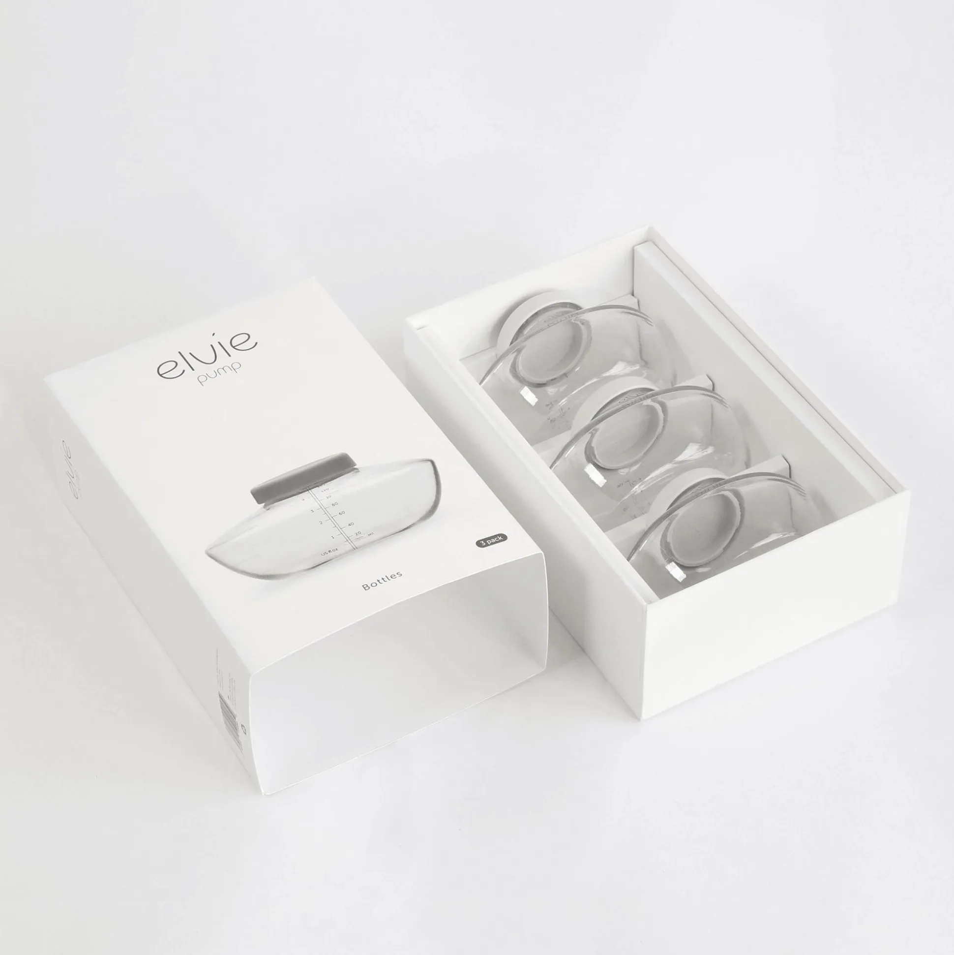 Die Flaschen im praktischen 3er-Set sind die perfekte Ergänzung zu deiner Elvie Pump Milchpumpe.