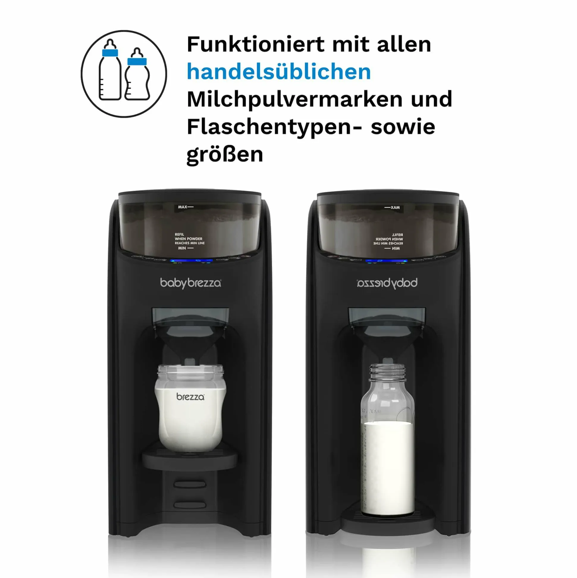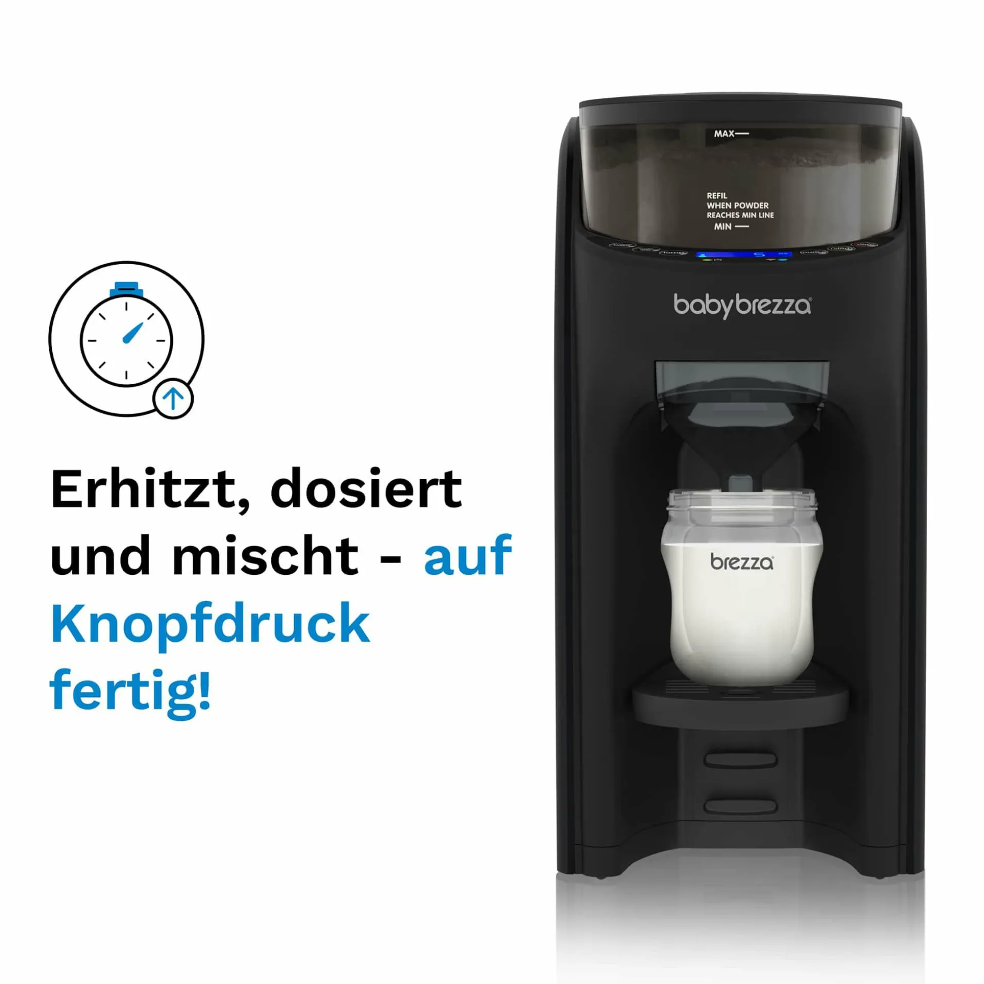 - universell für alle handelsüblichen Milchpulvermarken und Flaschentypen geeignet