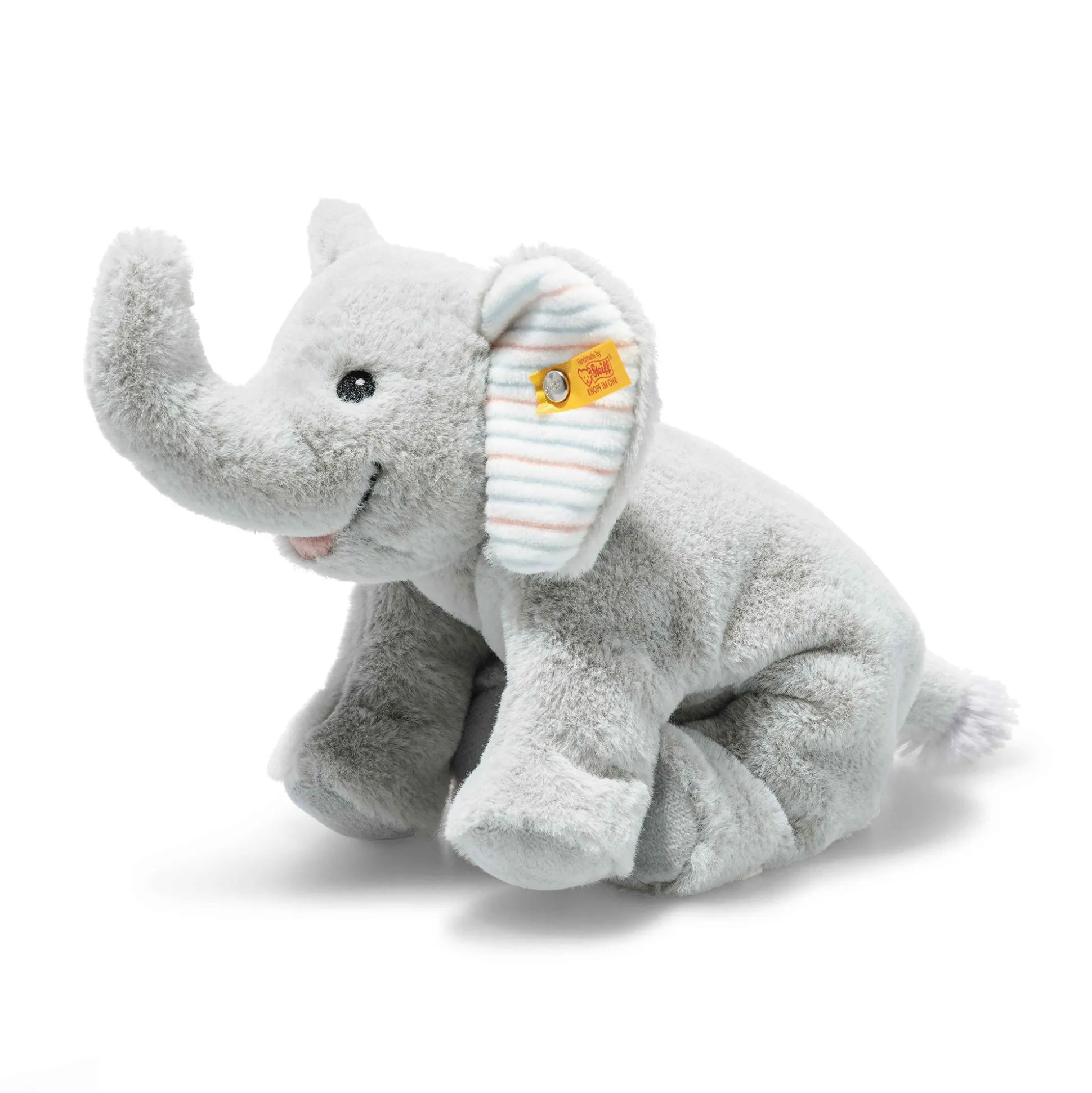 Der Floppy Trampili Elefant von Steiff aus der Soft Cuddly Friends Kollektion ist der ideale Begleiter für die Kleinsten. Mit einer Größe von 20 cm und kuschelweichem Plüsch lädt Trampili sowohl zum Spielen als auch zum Schmusen ein. Seine niedlichen gestickten Augen verleihen ihm liebevolle Details und die Granulatsäckchen im Bauch beruhigen deinen kleinen Schatz mit sanften Rascheln. Ob im Bett oder unterwegs – dieser süße Elefant sorgt stehts für Wohlfühlmomente und ist ein treuer Freund, der das Herz eines jeden Babys im Nu erobert.