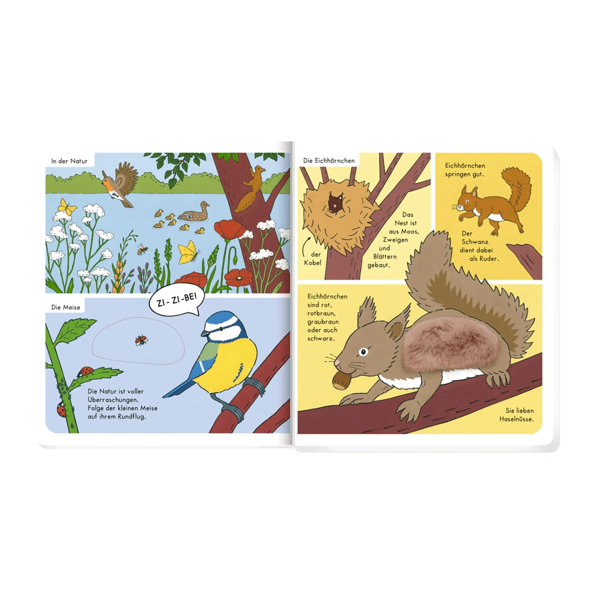 Mit dem wunderschönen Fühlbuch Mein Fühl-Wörterbuch: In der Natur von Coppenrath geht dein Kind auf eine spannende Entdeckungsreise durch die Natur! Welche Tiere leben hier? Wo baut das Eichhörnchen sein Nest? Und wer versteckt sich im Baumstamm? Mit liebevoll gestalteten Fühlelementen, Gucklöchern und kurzen Sachtexten werden die kleinen Naturforscher spielerisch an erstes Wissen über die heimische Tierwelt herangeführt.