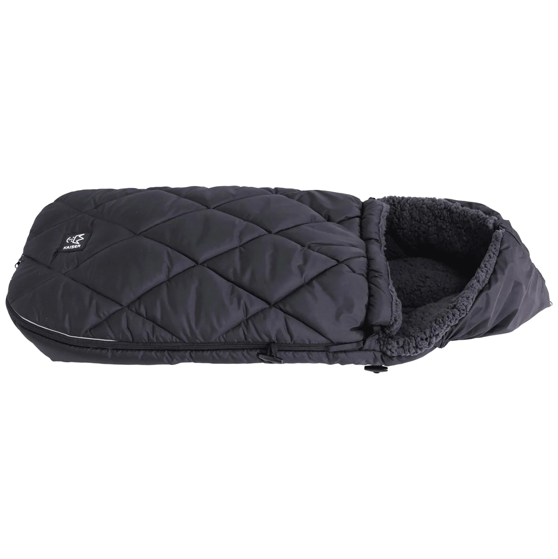 Der stylische Kaiser Fußsack XL Too im schönen schwarz sorgt unterwegs für Wärme und Komfort und macht Kindern den Alltag noch kuscheliger.