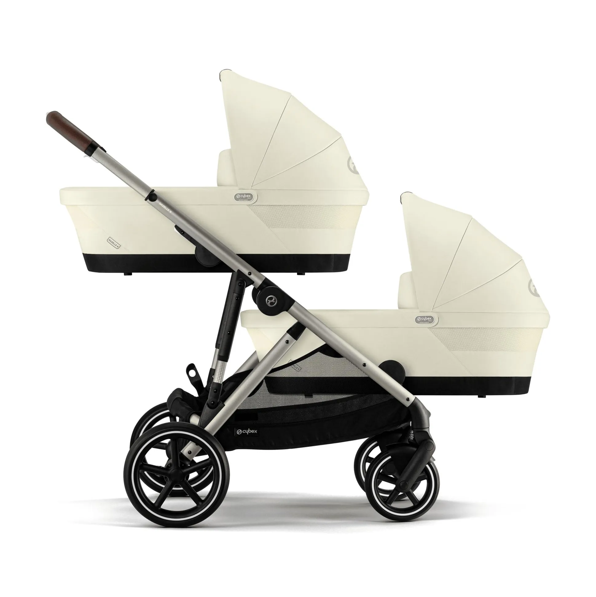 - bei Bedarf lassen sich auch zwei Babywannen gleichzeitig auf dem Gazelle S Rahmen befestigen – z. B. für Zwillinge