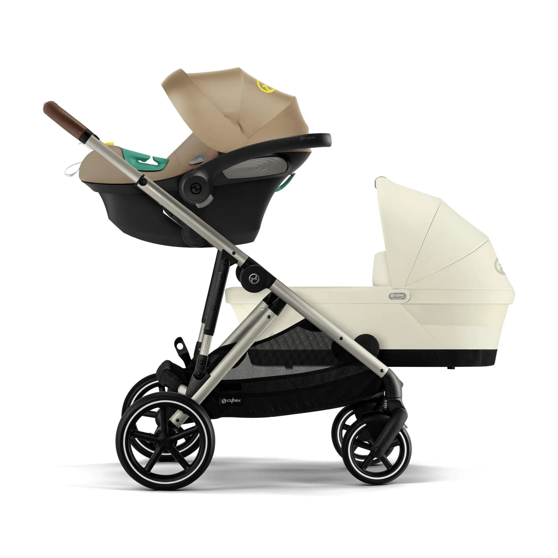 - weiteres ergänzendes Zubehör für den Gazelle S Kinderwagen (separat erhältlich): Gazelle S Cot Regenverdeck, Gazelle S Sitzeinheit, Cybex Gold Babyschalen, Gazelle S Autokindersitz-Adapter, Newborn Nest Neugeboreneneinlage, Gazelle S Regenverdeck, Getränkehalter, 2in1-Getränkehalter, Snack Tray, Gold Fußsack, Snogga 2 Fußsack, Sommer Sitzbezug, Kinderwagen-Sonnenschirm, Gazelle S Kid Board