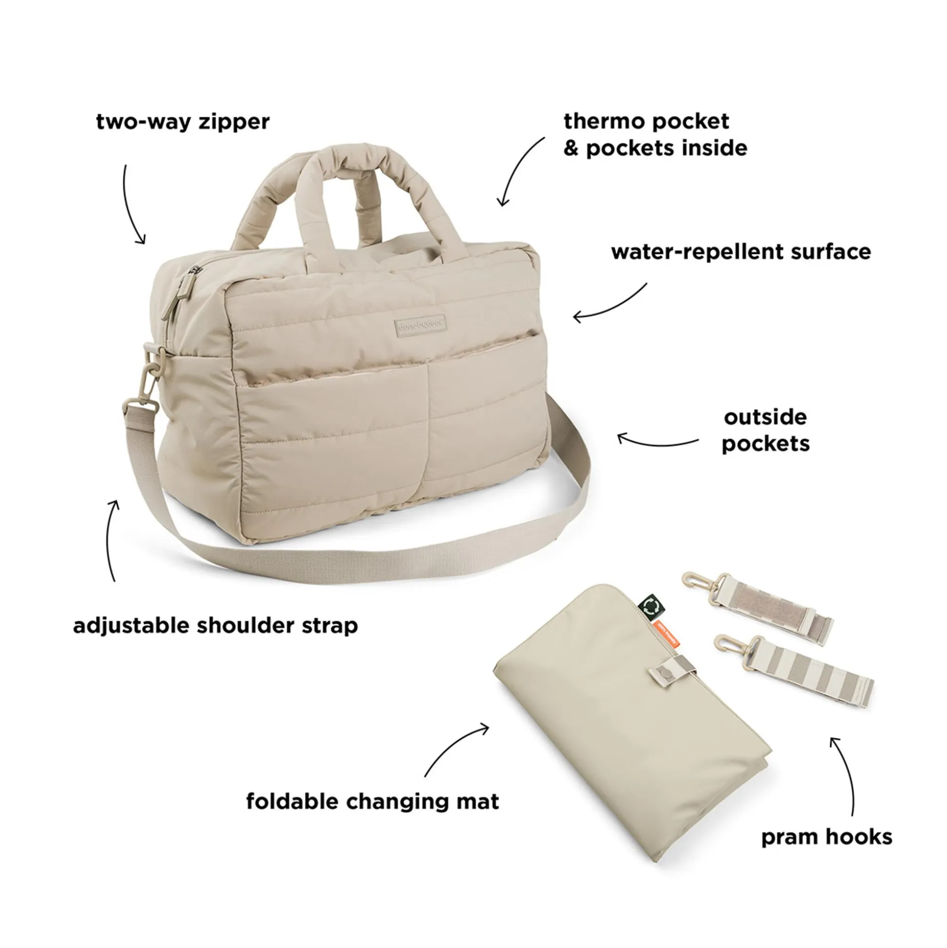 Die gesteppte Wickeltasche von done by deer im coolen Sand-Design bietet ausreichend Platz für alles, was du und dein kleines Wunder unterwegs benötigen. Mit der mitgelieferten Wickelunterlage kannst du Windeln überall problemlos wechseln. Die Tasche verfügt zudem über Innen- und Außentaschen für zusätzliche Ordnung.Ein isoliertes Innenfach sorgt dafür, dass Flüssigkeiten warm oder kalt bleiben. Dank der wetterfesten Oberfläche bleiben auch alle deine wichtigen Dinge trocken.
