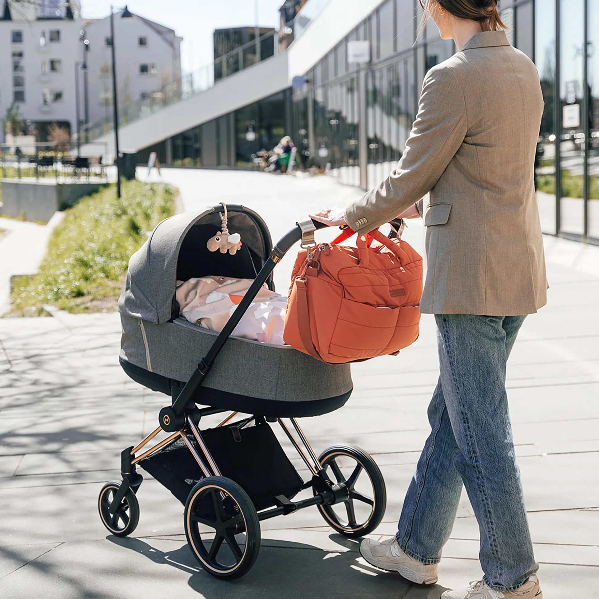 Die Wickeltasche und die Wickelunterlage bestehen aus recyceltem Polyester, gefertigt aus insgesamt 48 PET-Flaschen.Das weiche gesteppte Design in Grün macht die Tasche nicht nur funktional, sondern auch stilvoll. Die äußeren Riemen ermöglichen eine einfache Befestigung am Kinderwagen deines kleinen Lieblings.
