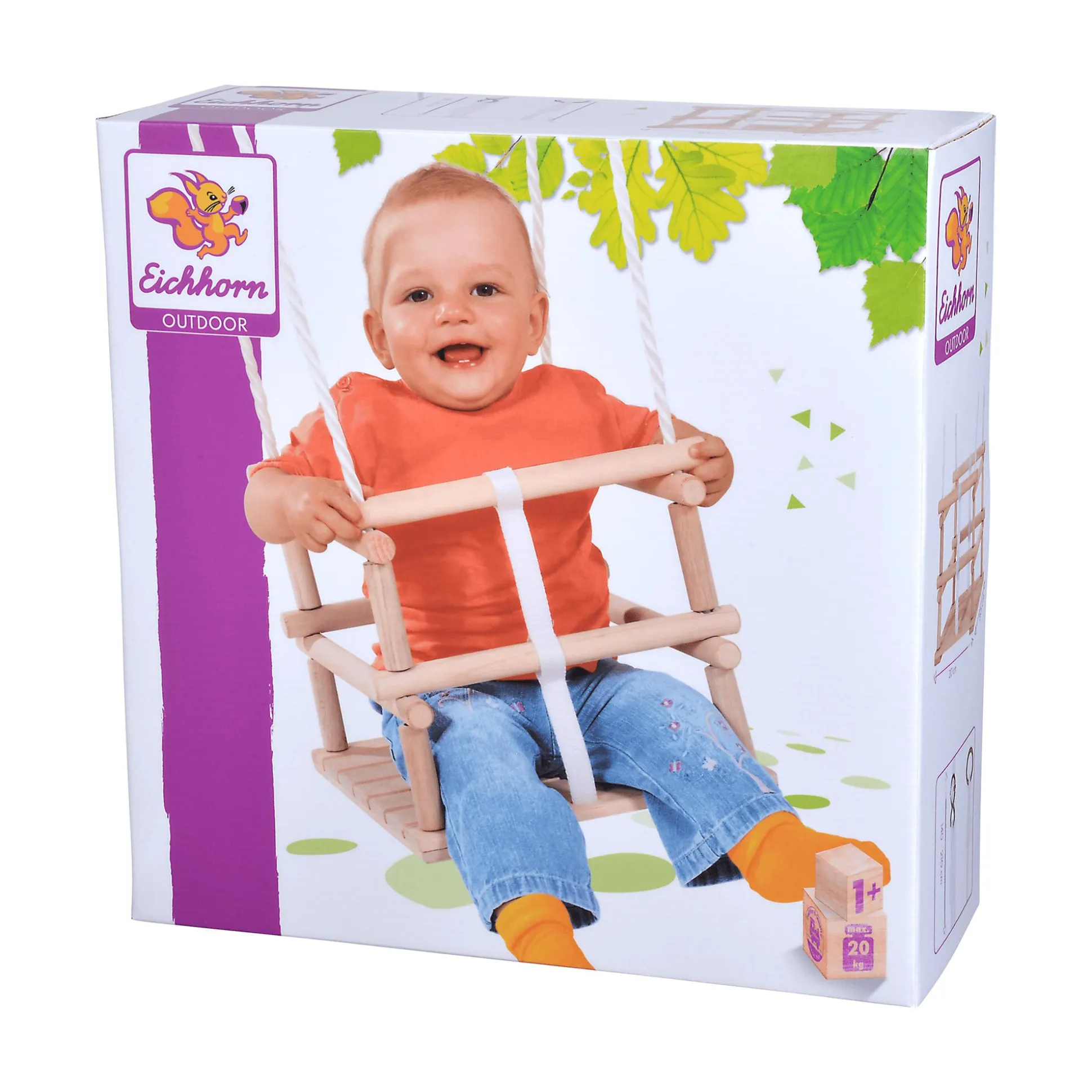 Die Gitterschaukel von Eichhorn begeistert mit ihrem hochwertigen Holz und bietet deinem Kind ab etwa einem Jahr ein sicheres Schaukelerlebnis. Mit einer Sitzfläche von ca. 30 x 30 cm bietet sie genug Platz für komfortables Sitzen.Die verstellbare Schnur, mit einer Länge von etwa 140 bis 210 cm, passt sich flexibel an unterschiedliche Aufhängungen an und sorgt für die perfekte Höhe. Sicherheit steht an erster Stelle: Die Gitterschaukel ist TÜV/GS geprüft und bis zu einem Gewicht von etwa 20 kg belastbar.
