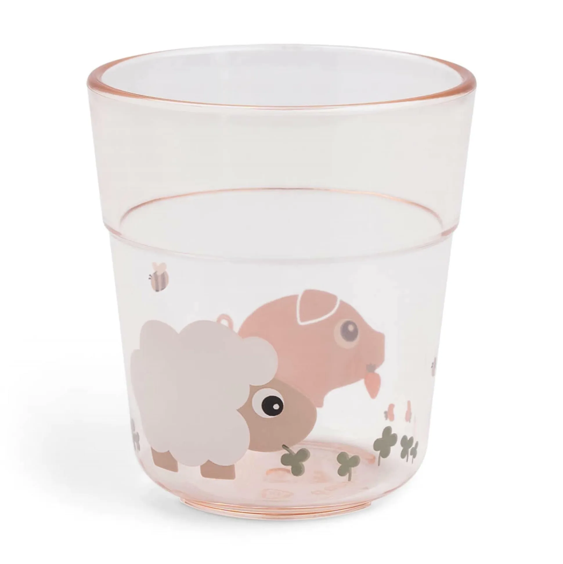Ein cleverer Nebeneffekt: Das durchsichtige Material sorgt dafür, dass die Getränke visuell ansprechender wirken – egal ob bunter Saft oder klares Wasser. So wird dein Kind spielerisch dazu animiert, mehr zu trinken. Dank des robusten Designs liegt das Glas gut in der Hand und ist die perfekte Ergänzung für den gedeckten Tisch im Tiny Farm Look.