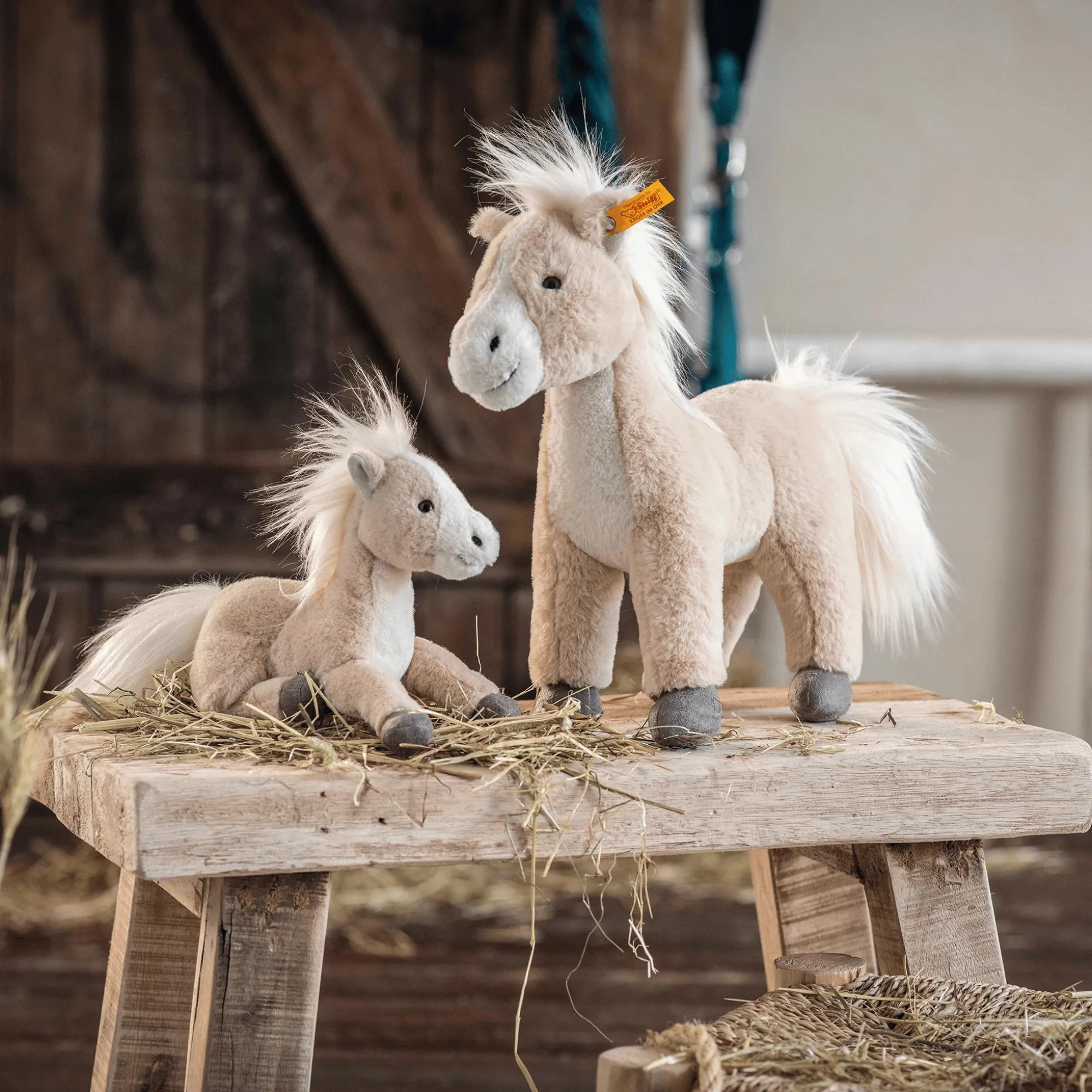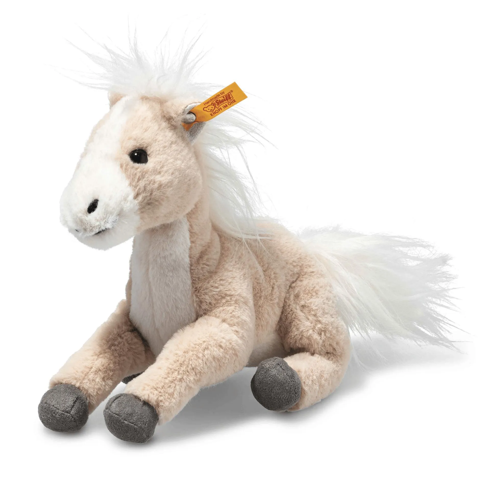 Das niedliche Schlenker-Pferd Gola von Steiff aus der Soft Cuddly Friends Kollektion wird schnell zum liebsten Begleiter für kleine Pferdefans. Mit einer handlichen Größe von 18 cm und dem kuschelweichen Plüsch ist Gola perfekt für unterwegs. Dank ihrer langen, schlaksigen Beine lässt sich Gola einfach greifen und tragen, während die flauschige Mähne und der Schweif jedes Kind verzaubern. Ob zum Kuscheln oder Spielen, Gola ist immer dabei.