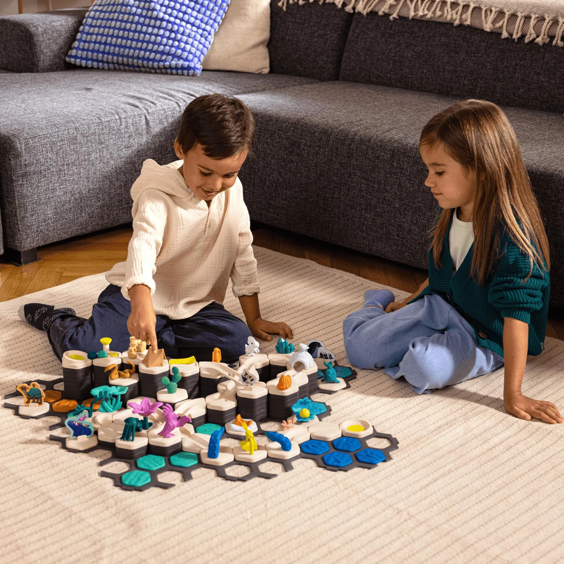 GraviTrax Junior ist ein interaktives Kugelbahnsystem für Jungen und Mädchen ab ca. 3 Jahren: Mit GraviTrax Junior bauen Kinder nicht nur einfache Kugelbahnen. Durch individuelles Dekorieren mit liebevoll gestalteten Elementen erschaffen Kinder ihre eigenen Themenwelten.Bei GraviTrax Junior werden altersgerechte Lerninhalte thematisiert.Motorische Fähigkeiten und räumliches Denken werden durch das freie Konzipieren der Kugelbahnen gefördert. Durch das Erforschen des Rollverhaltens der Kugeln wird das Prinzip von Ursache und Wirkung hautnah erlebt. Das Spielen mit den (Tier-)Figuren und das Dekorieren der Themenwelten fördern das kreative Rollenspiel und die Fantasie der Kinder.Durch verschiedene Erweiterungen können Kinder ihre Kugelbahnen vergrößern und immer wieder neu gestalten – langanhaltender Spielespaß garantiert.