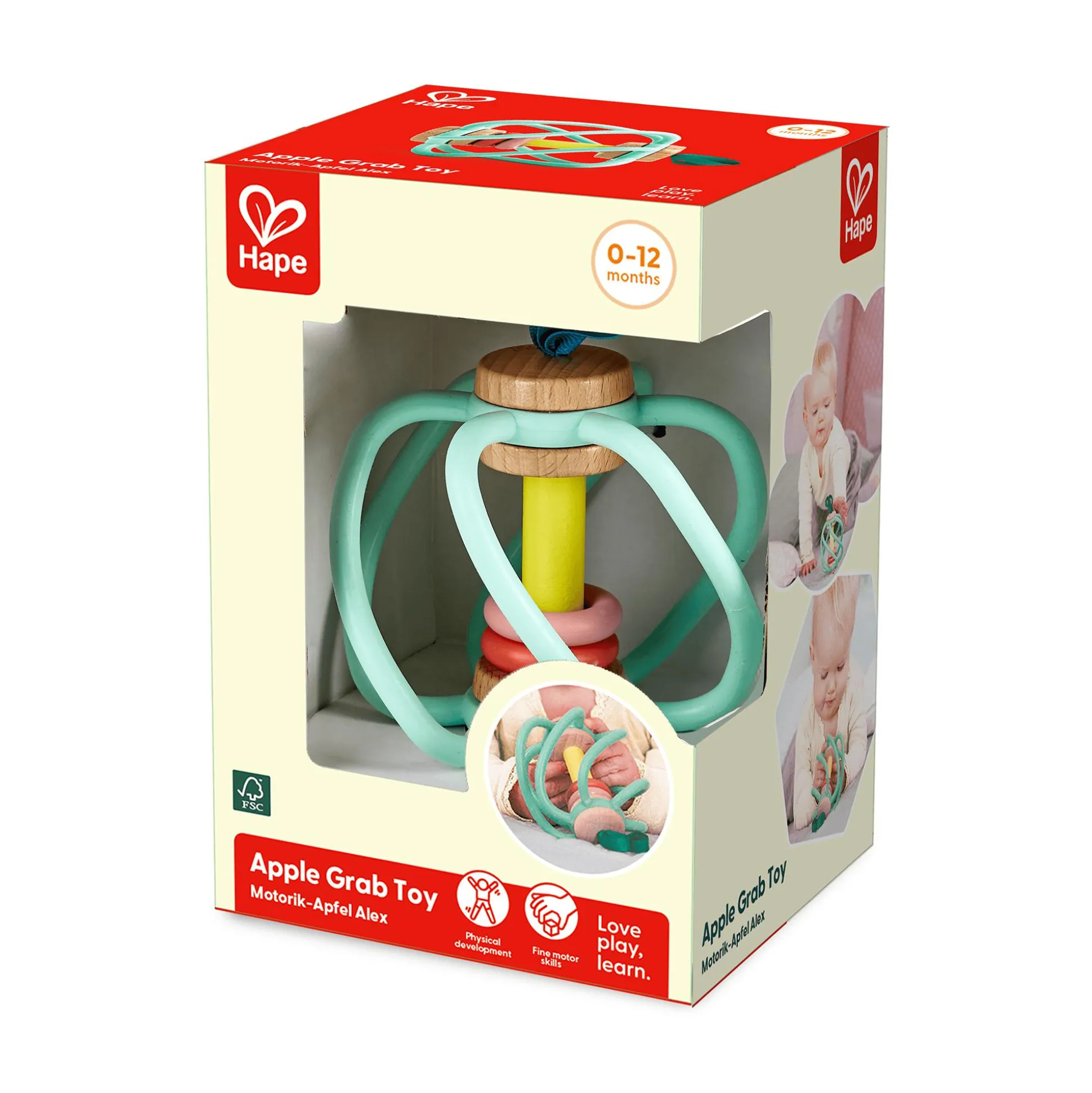 Der Greifling Apfel Alex von Hape ist das ideale Spielzeug für deinen kleinen Sonnenschein! Der liebevoll gestaltete Greifling bringt spielerisch verschiedene Materialien wie Holz, Kunststoff, Textil und Kautschuk näher. Mit seinen kleinen Ringen fördert er die Feinmotorik deines Kindes, während der flexible Kautschuk die perfekte Griffigkeit bietet und zum Greifen und Biegen einlädt. Ab etwa drei Monaten sorgt Alex für jede Menge Spaß und ist der ideale Begleiter für die ersten Entdeckungen deines kleinen Lieblings.