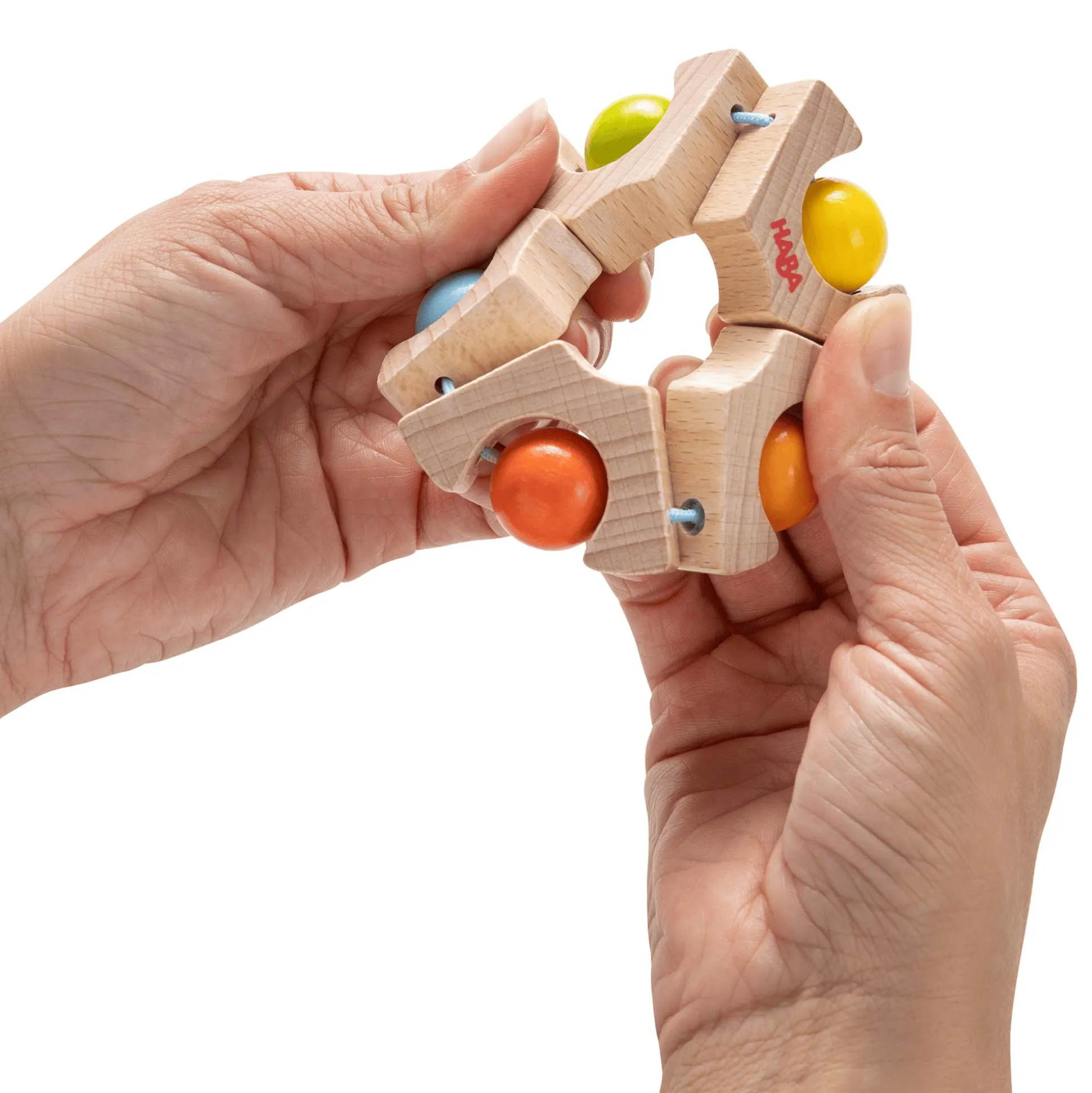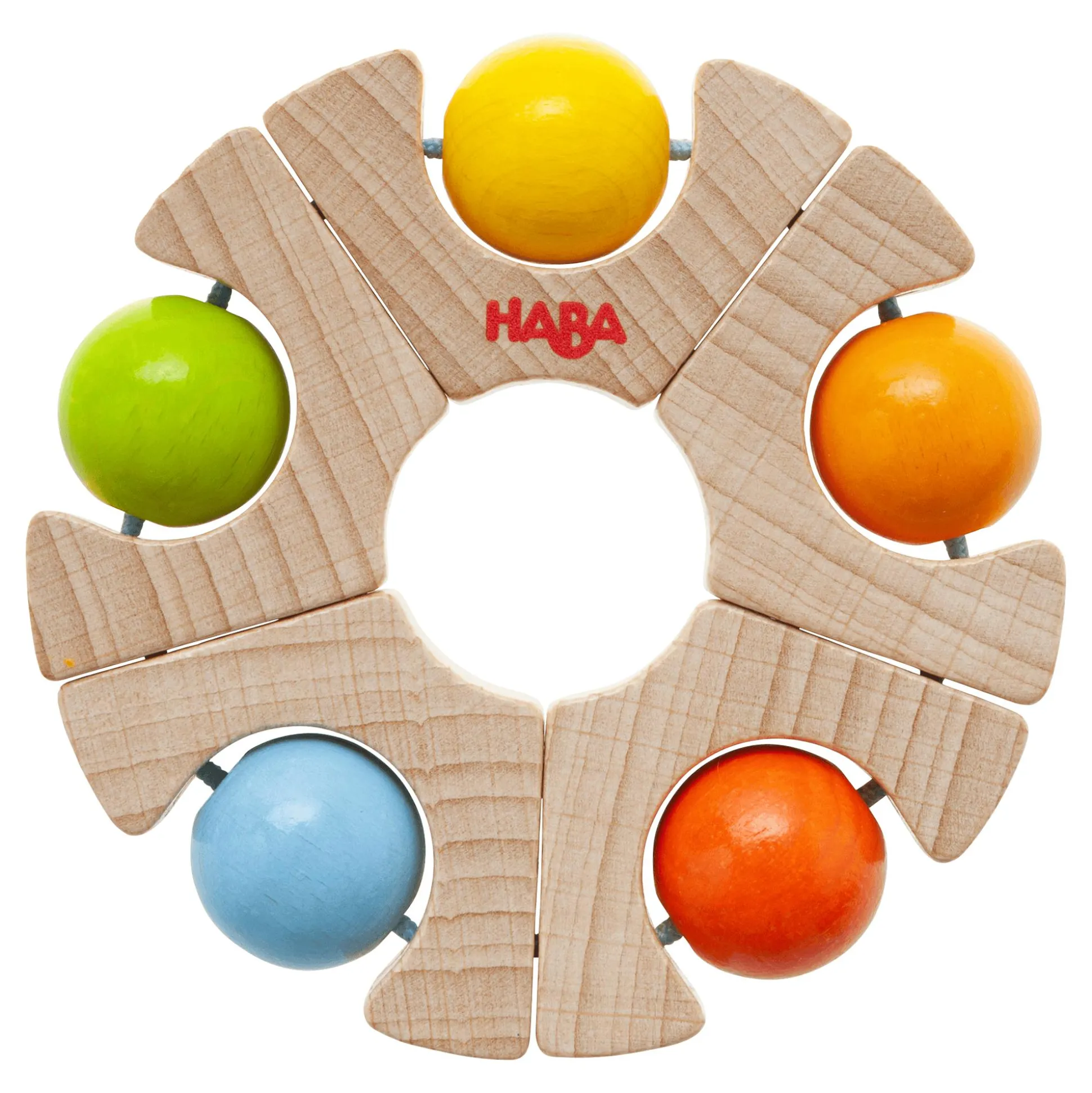 Der Greifling Kugelrad von HABA bietet eine Welt voller Freude für dein kleines Wunder! Die fünf beweglichen Kugeln in fröhlichen Farben laden dein Kind zum Greifen und Entdecken ein, während der lustige Klappereffekt für begeisterte Lachmomente sorgt. Mit diesem faszinierenden Greifring wird dein Baby ab ca. sechs Monaten spielerisch seine Feinmotorik entwickeln und seine Aufmerksamkeit schulen.