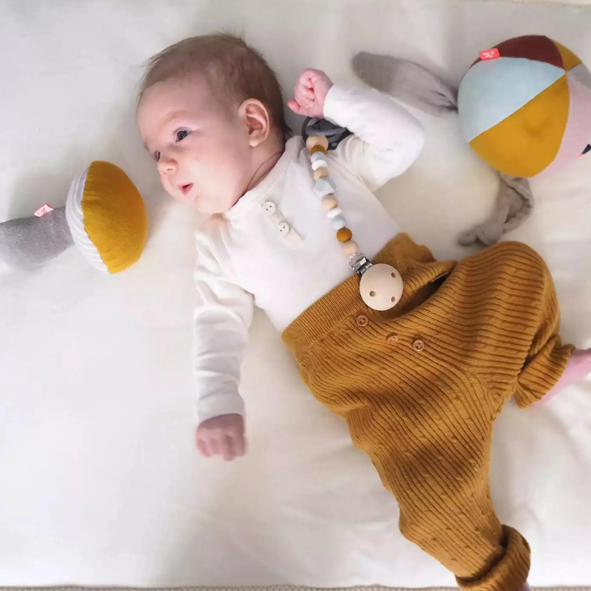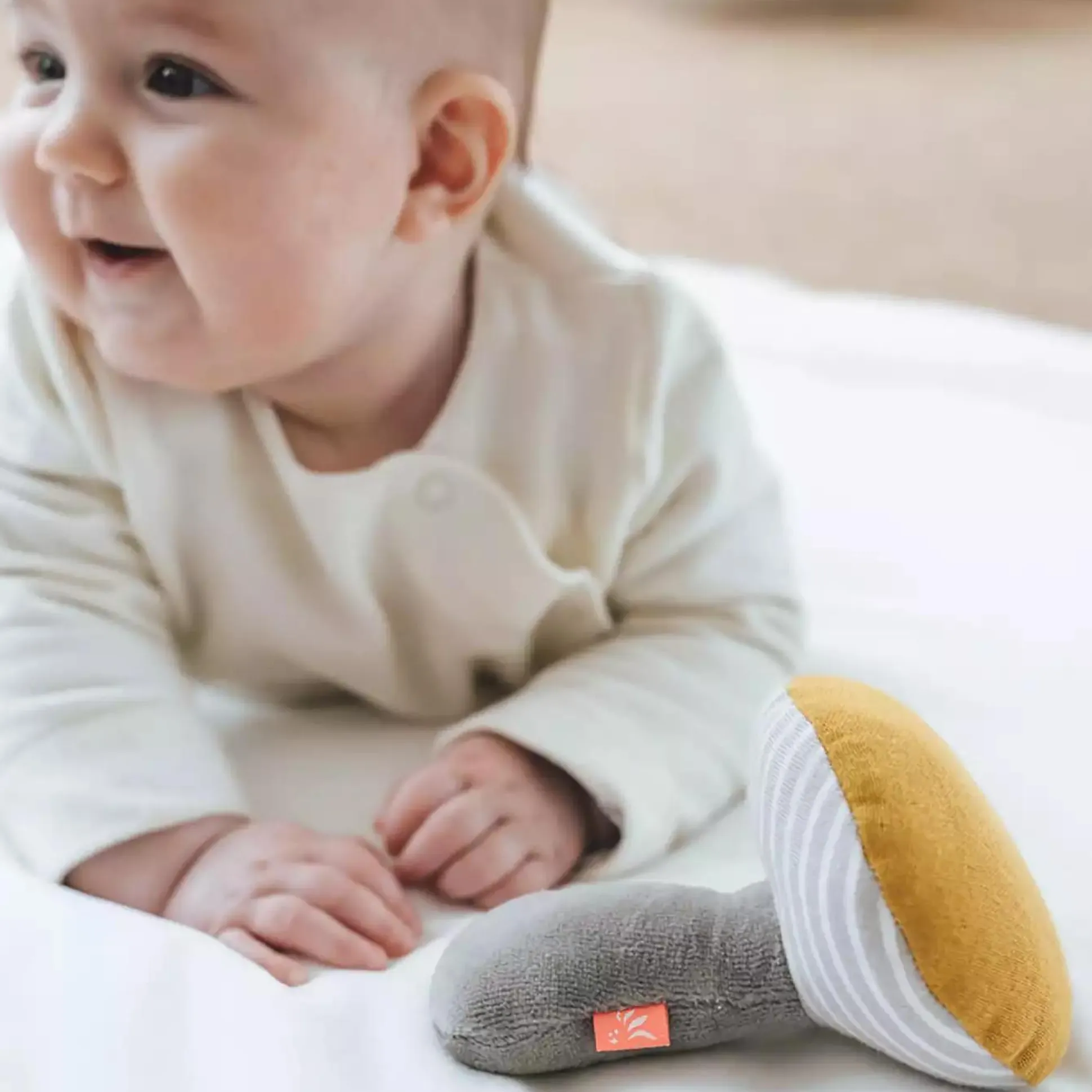 Dieser niedliche Greifling von Kikadu in Form eines Pilzes passt perfekt in die kleinen Händchen deines Babys. Nimmt es den Pilz in die Hand ertönen spannende Rasselgeräusche, wodurch die Sinne angeregt werden. Die verschiedenen weichen Stoffe sind schön anzufassen und toll zum kuscheln. Auch als Geschenk zur Geburt oder zum Geburtstag ist der kleine Pilz super geeignet. Der Greifling von Kikadu ist perfekt für unterwegs – dein kleiner Schatz kann ihn überall mit hinnehmen.
